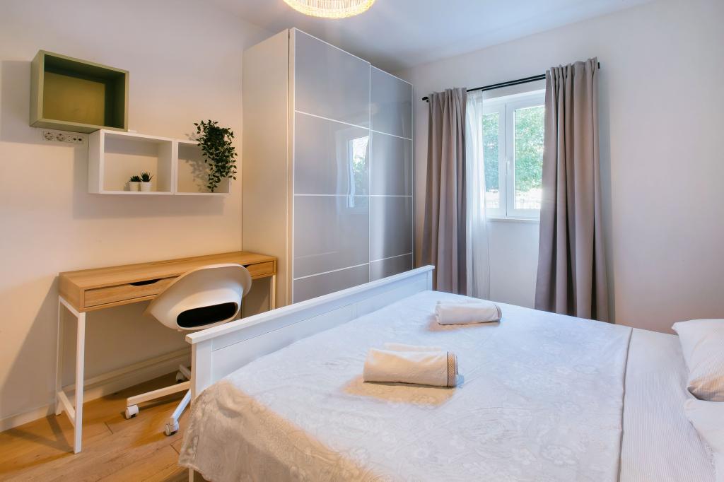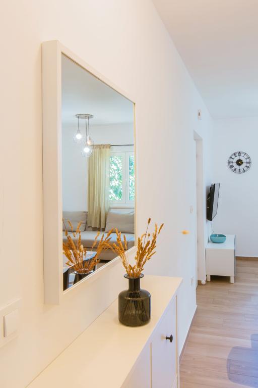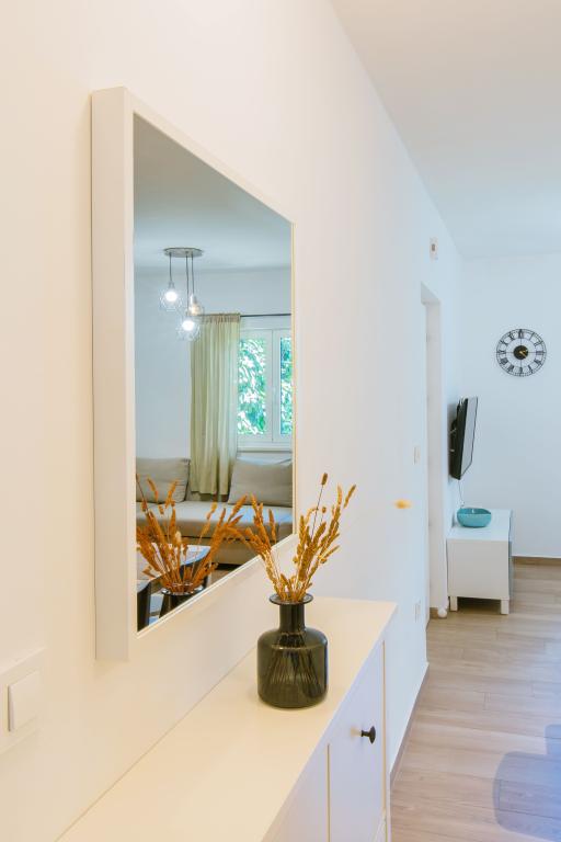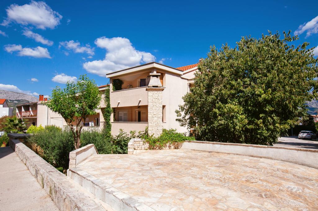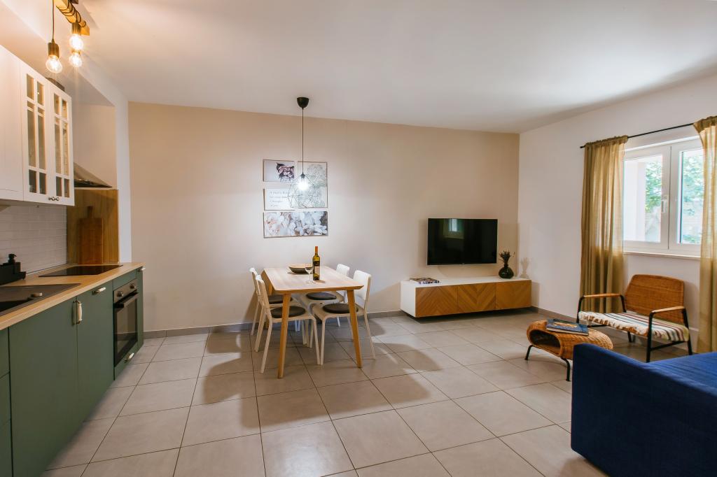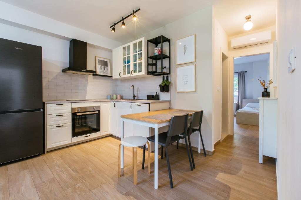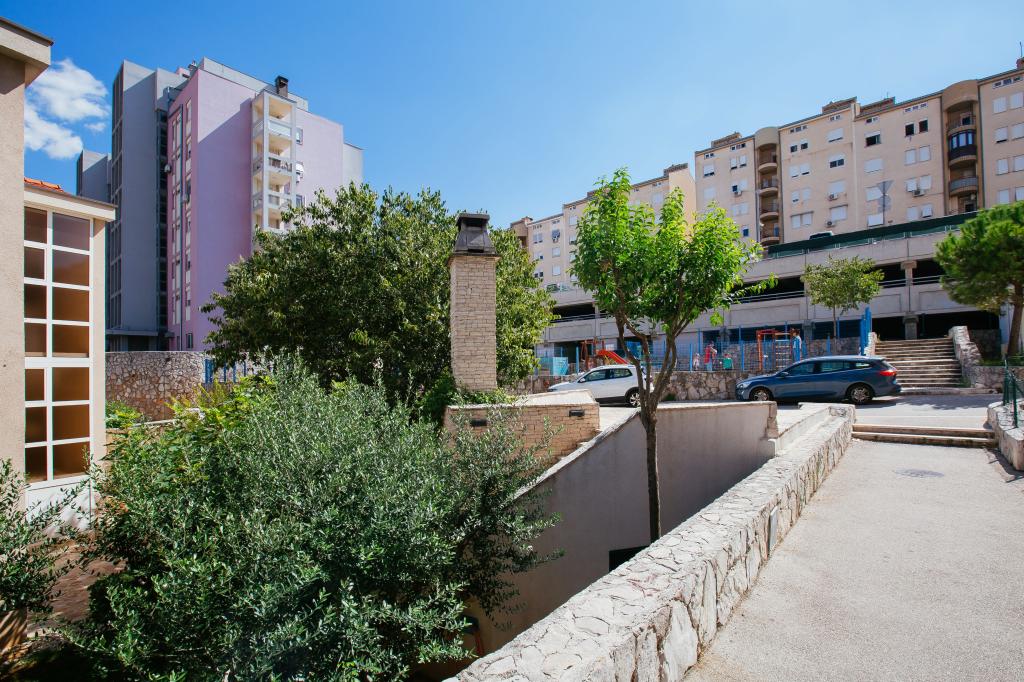 Üdvözöljük modern és kényelmes spliti apartmanunkban! Egy magánház földszintjén, a város egy csendes és biztonságos részén található apartmanunk tökéletes választás egy pihentető tartózkodáshoz – akár nyaralni, városnézésre, akár távmunkában dolgozni érkezik. Az apartmanról Modern, tágas és teljesen felszerelt Légkondicionáló a nappaliban és a hálószobában Szupergyors Wi-Fi – ideális otthoni munkavégzéshez vagy streaminghez Saját terasz hegyi kilátással – a nyugalomért és a pihenésért Mosógép – további kényelem hosszabb tartózkodás esetén Konyha és nappali Teljesen felszerelt konyha: mosogatógép, sütő, főzőlap, hűtőszekrény, vízforraló és edények Nappali síkképernyős TV-vel Fürdőszoba zuhanyzóval és hajszárítóval Tiszta ágynemű és törölközők benne foglaltatnak Parkolás és kert Saját parkoló: garázshely vagy kültéri hely az udvaron belül Gyep és földterület a szabadtéri pihenéshez