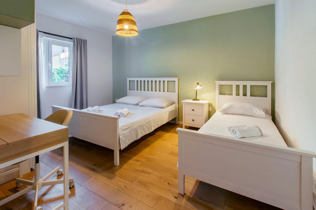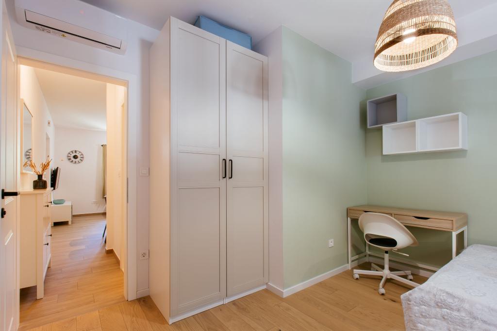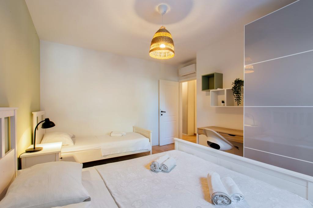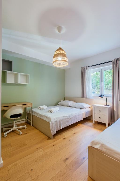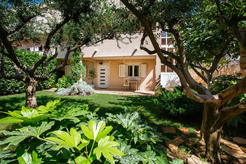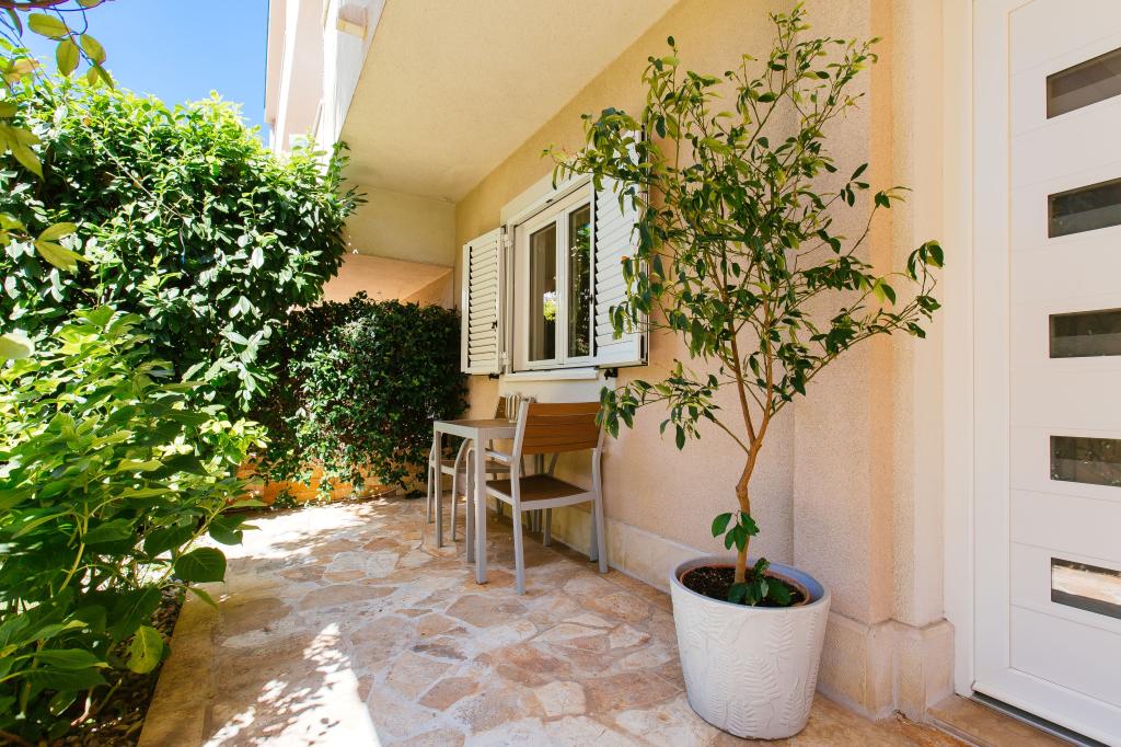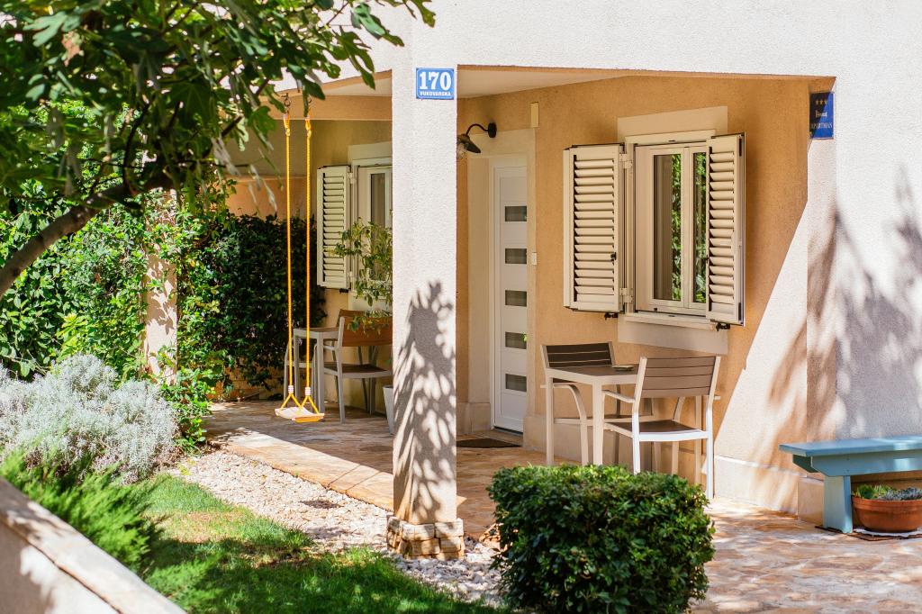 Üdvözöljük modern és kényelmes spliti apartmanunkban! Egy magánház földszintjén, a város egy csendes és biztonságos részén található apartmanunk tökéletes választás egy pihentető tartózkodáshoz – akár nyaralni, városnézésre, akár távmunkában dolgozni érkezik. Az apartmanról Modern, tágas és teljesen felszerelt Légkondicionáló a nappaliban és a hálószobában Szupergyors Wi-Fi – ideális otthoni munkavégzéshez vagy streaminghez Saját terasz hegyi kilátással – a nyugalomért és a pihenésért Mosógép – további kényelem hosszabb tartózkodás esetén Konyha és nappali Teljesen felszerelt konyha: mosogatógép, sütő, főzőlap, hűtőszekrény, vízforraló és edények Nappali síkképernyős TV-vel Fürdőszoba zuhanyzóval és hajszárítóval Tiszta ágynemű és törölközők benne foglaltatnak Parkolás és kert Saját parkoló: garázshely vagy kültéri hely az udvaron belül Gyep és földterület a szabadtéri pihenéshez