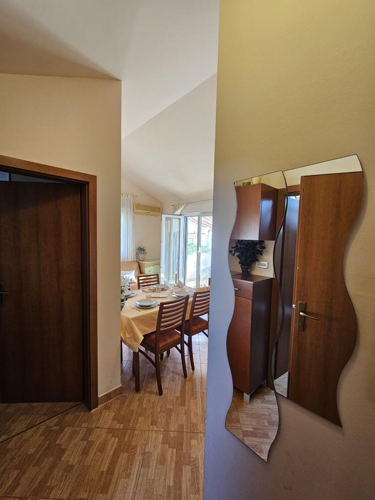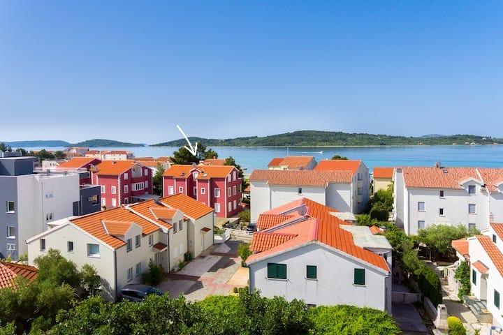 Új és modern apartman Srima csendes részén, Vodice közelében, tengerre néző kilátással. A gyönyörűen parkosított strand kb. 100 méter. A létesítmény kb. 200 méterre a falu központjától, és 25 percnyi sétára (a sétányon) Vodice városáig.