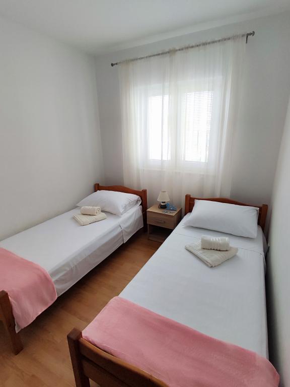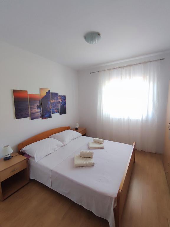 Az apartman Srima csendes városában található, Vodice mellett. A 42m²-es lakás az első emeleten található. Található benne egy nappali konyhával, két hálószoba, egy fürdőszoba és egy tágas terasz. A lakás szúnyoghálóval felszerelt, őrzött parkolóval rendelkezik. A strand néhány percnyi sétára van az apartmantól. A strand mellett kávézók, éttermek, üzletek, játszótér stb. található. Az apartman és környéke ideális egy családi nyaraláshoz.
