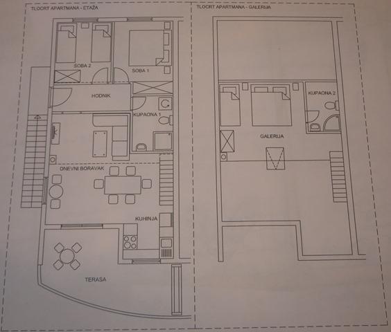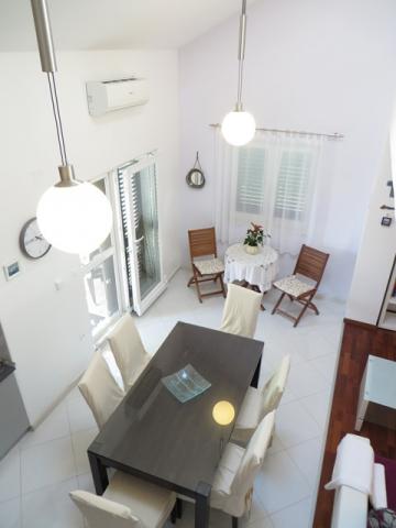 Kortárs és modern apartman egy családi ház első emeletén egy kicsi és csendes helyen Srimában. Második sor a tenger felé, 140 m-re a gyönyörű kavicsos strandtól (Kék zászló). A lakáshoz 75 m2-es (WC és fürdőszoba, két hálószoba, konyha, étkező és nappali) galéria tartozik fürdőszobával és WC-vel, valamint egy 14 m2-es félig fedett terasz. Becsült létszám 6 fő (szoba 4, galéria 2) Teljesen berendezett minőségi bútorokkal és berendezésekkel (műholdas TV, internet, LCD TV, rádió, mosogatógép és mosógép, hajszárító, mikrohullámú sütő, vízmelegítő, 2 klíma) kielégíti. többre vágyó vendégek. Méretéből adódóan két család számára is ideális. Srima Vodice városának közelében található, amely egy híres nyári üdülőhely, ahol minden pihenéshez és rekreációhoz szükséges létesítmény és két nemzeti park található: NP Kornati és NP Krka.