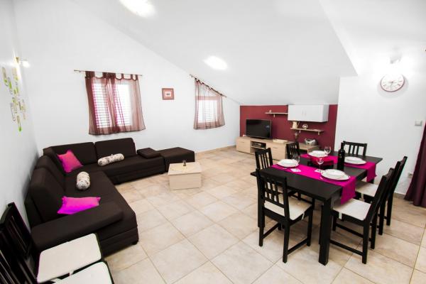 Apartman Ružmarin egy nagyon szép, tiszta, tágas, teljesen berendezett, alkalmas gyermekes családok, az otthoni nagyon kedves és segítőkész, a strand közelében, a Krka Nemzeti Park, Sibenik, a sok látnivaló.