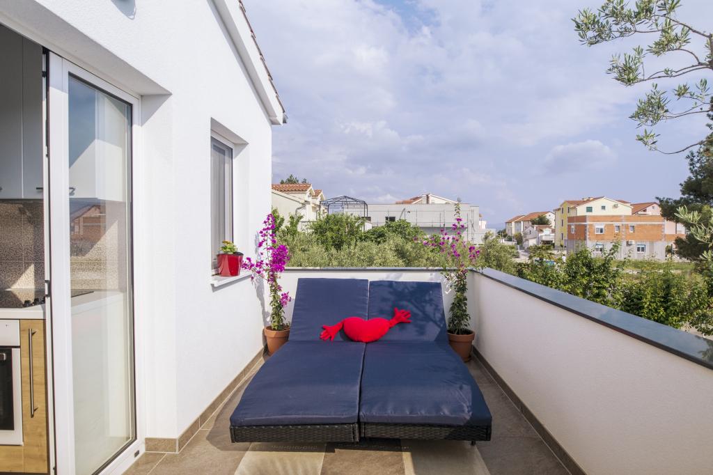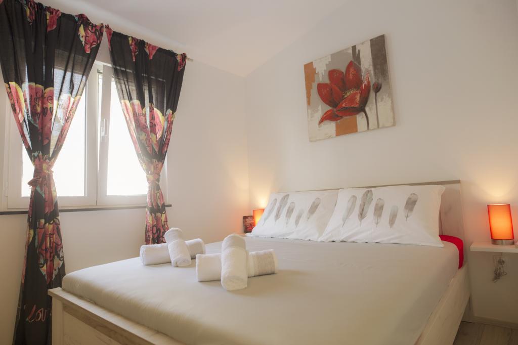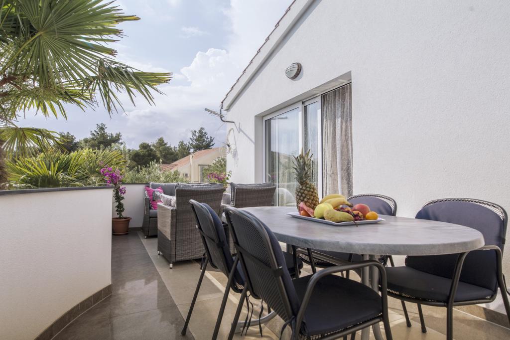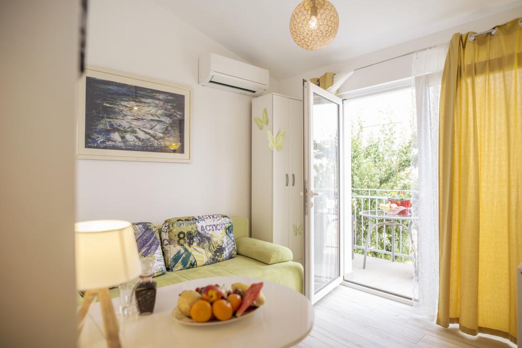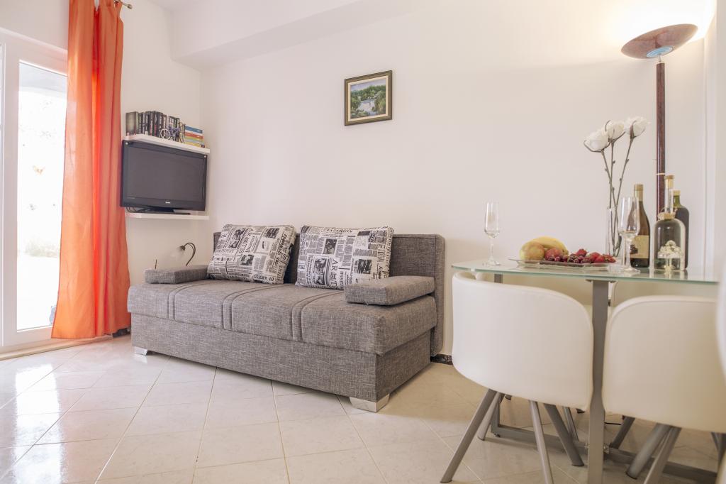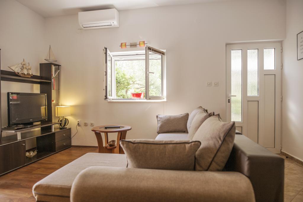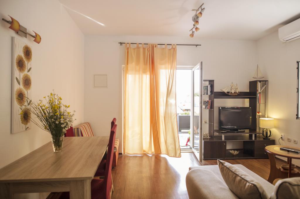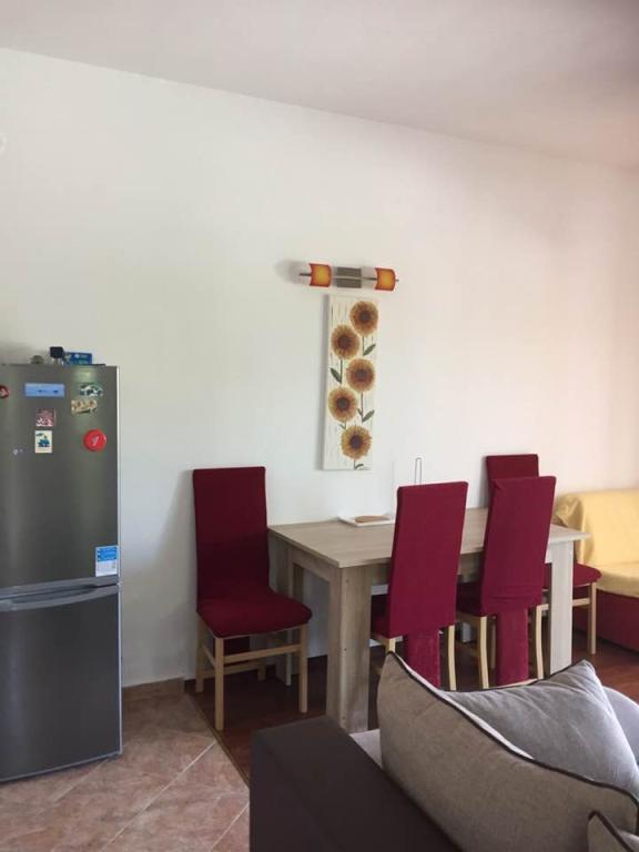 Teljesen felszerelt apartmanok Srima csendes részén, 60 méterre a homokos strandtól. A közelben van egy játszótér, sétány, étterem, üzlet. Az apartmanok teljesen berendezettek. Az apartman előtt terasz áll rendelkezésre, ingyenes parkolási lehetőséggel. Ideális hely egy családi vakációhoz gyermekekkel, A ház mellett 4 apartman található, négy fő részére is. Ezek egymás mellett helyezkednek el. Háziállatok előzetes egyeztetés alapján engedélyezettek Lehetőség van egy kiságy elhelyezésére a hálószobában.
