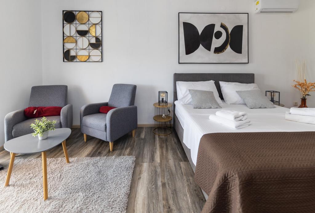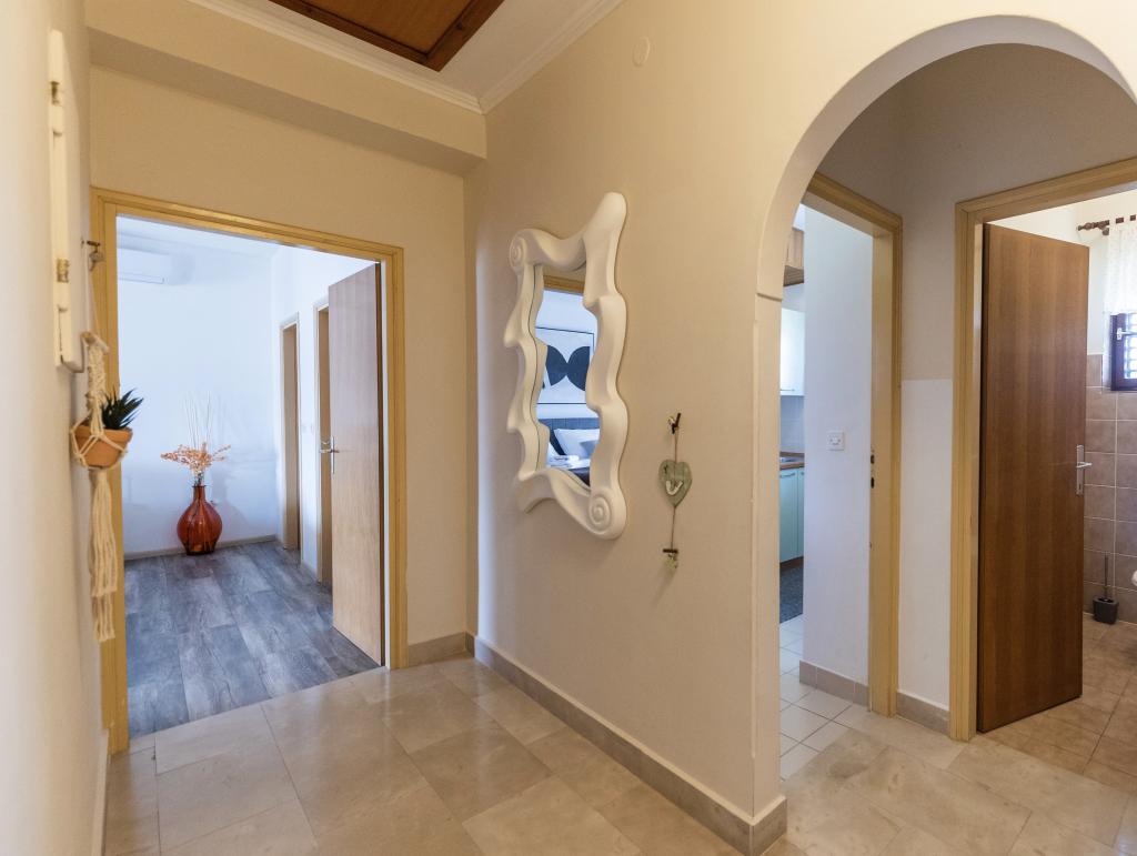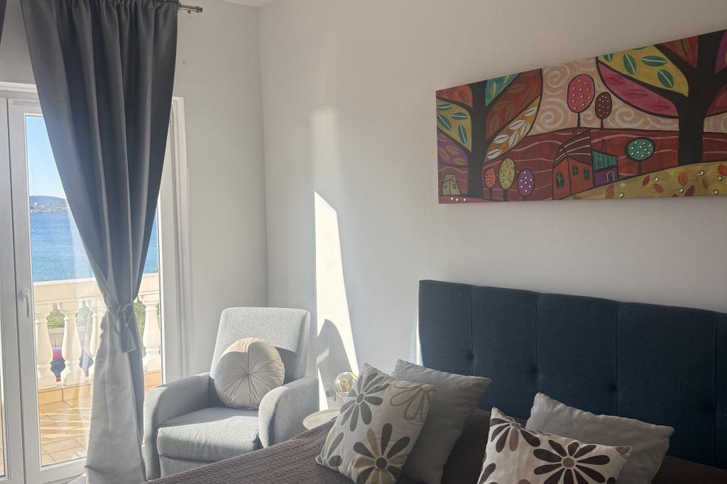 Közvetlenül a tenger mellett, Srimában, egy családi ház első emeletén modern apartmanok kiadók. Minőségi készlet, légkondicionálás, felszereltség általában kielégíti a többre vágyó vendégeket. Az apartmanok egyesítésével a kényelmes két- és háromágyas szobák egy turistacsoportot is el tudnak fogadni. A késői tengeri kilátás is hozzájárul a biztonságérzethez és a kikapcsolódáshoz.