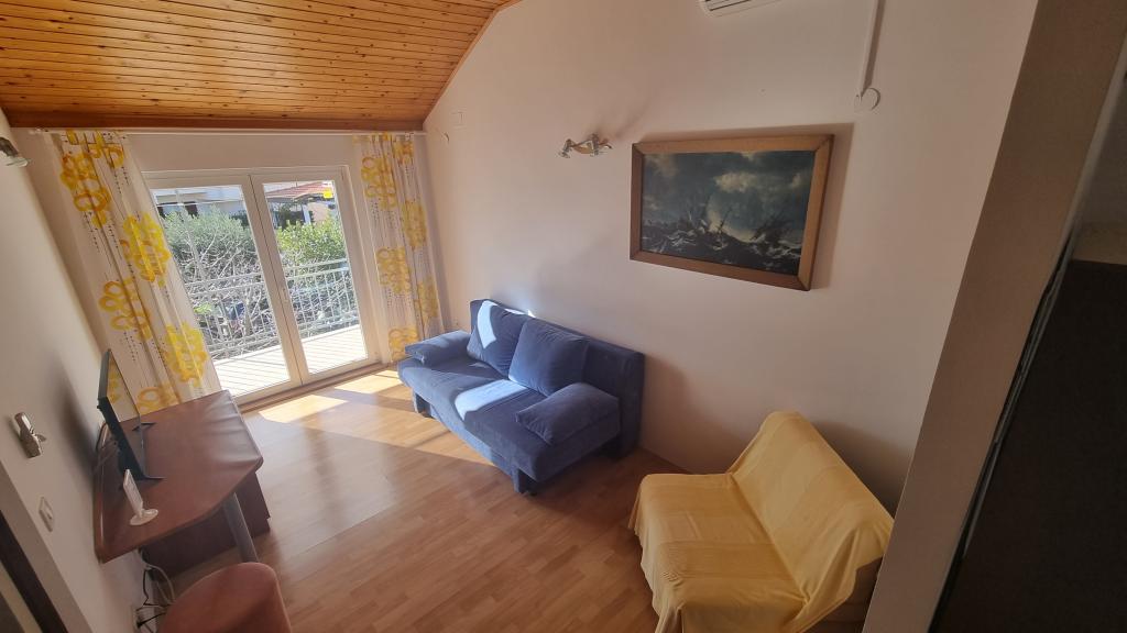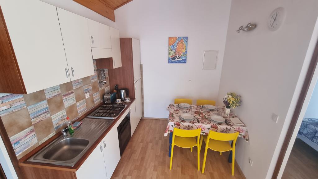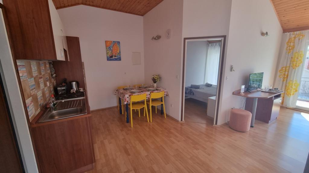 Az apartmanok Vodice külvárosában, Srima városrészben találhatók. 3 apartmant kínálunk. Házunk első emeletén 2,2 fős apartmanok, a földszinten pedig egy 2,1 fős stúdióapartman található. Minden apartman légkondicionált. Minden apartmanhoz tartozik egy árnyékos parkolóhely. A kertben grillező és játszótér is található. A ház egy mellékutcában található, így nyugalmat és magánéletet biztosít. A strand 200 méterre, a bolt pedig 150 méterre található. A városközpont (Srime) 500 méterre, Vodice központja pedig körülbelül 2 km-re vagy 20 perces könnyű sétával elérhető.