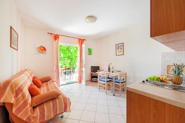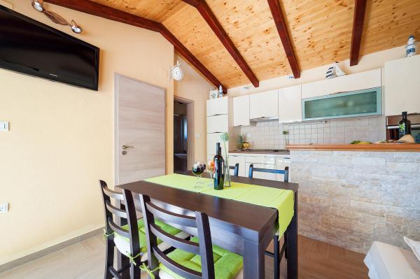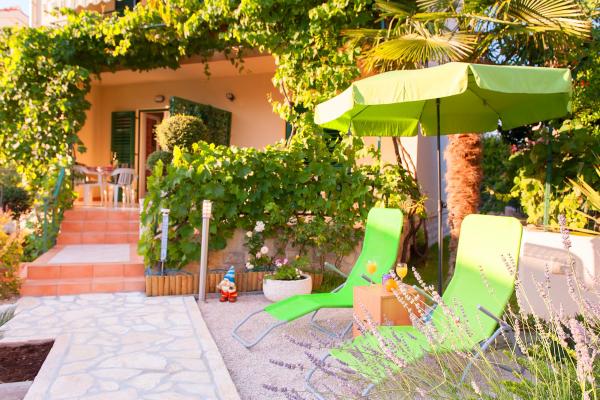 Apartman-ház Olive elkapott első pillantásra. Díszített modern és ízléses. A fürdőszoba tágas, mint az, számomra nagyon fontos. Egy nagy konyha minden alapvető elemei, van mosogatógép, ami kellemesen csalódtam. A házigazdák nagyon barátságosak és diszkrét. A közeli gondozott strandok, nagy és szép kert legnagyobb előnye ennek a tulajdonságnak.