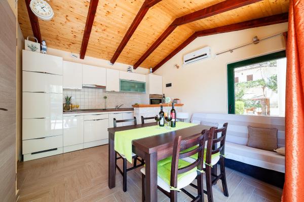 Fantasztikus hét egy kis teraszos házban. Tiszta, rendezett, szuper felszerelt konyha, grillsütő, étkezési lehetőség a teraszon. A fotók nem képesek ezt a hangulatot visszaadni. Ide kell jönnöd. Csendes környék, néhány lépésre minden strandtól, 5 perc sétára Vodice szórakoztató és vonzó része. A tulajdonos nagyon kedves, a lánya gyönyörű. Egy hely, amelyet érdemes ajánlani.