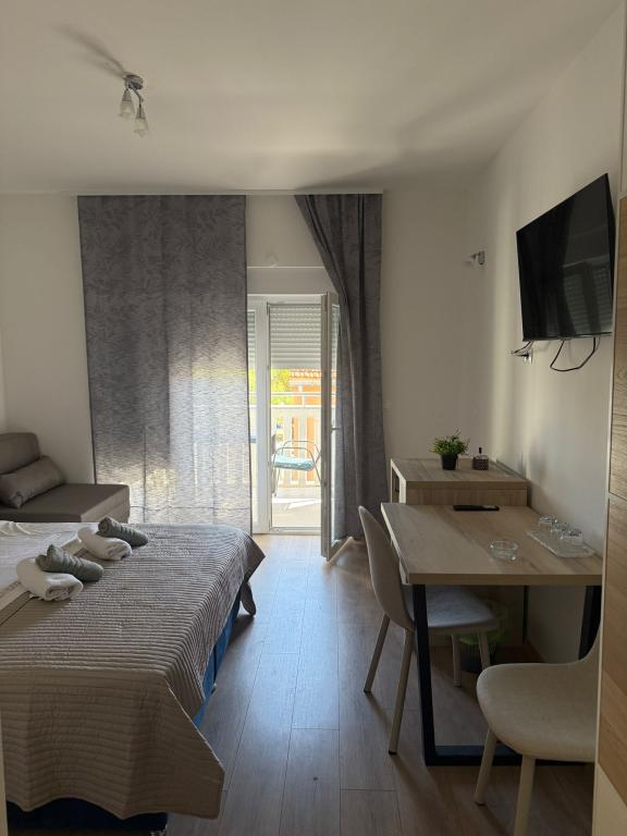 Újonnan felújított szálláshely Srima városában, a tengertől első sorban, ahol homokos és kavicsos strand található. A szálláshely közelében pékség, üzlet és étterem található, 200 méter sétára, Vodice városa 1 km-re a sétányon. Kétágyas szobák pótággyal foglalhatók, ideálisak egyéni utazók, párok és üzletemberek számára. Az ajánlat tartalmaz egy stúdióapartmant konyhasarokkal és apartmanokat külön hálószobával. A szállásegységek az épület 1. és 3. emeletén találhatók. Az épületben lift található. Minden szoba különálló szálláshely.
