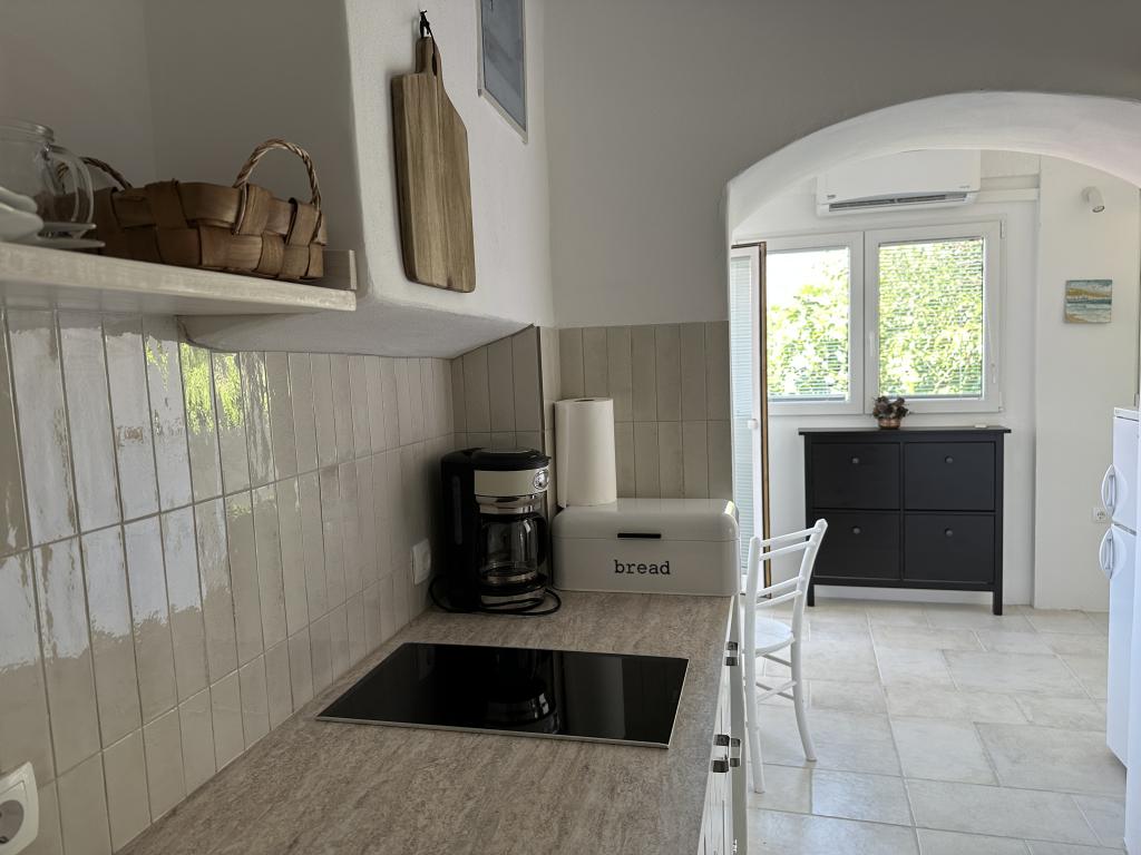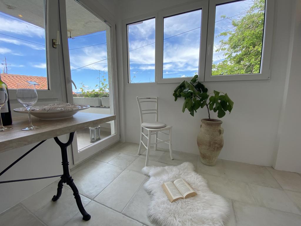 A ház 50 méterre található a homokos és kavicsos strandtól. A parton nincs tömeg, a tenger kristálytiszta. A házban két apartman található. A lakás frissen felújított és teljesen felszerelt. Az apartmanban két hálószoba franciaággyal, teljesen felszerelt konyha, fürdőszoba és tengerre néző erkély található. A háztól 100 méterre egy parkolóhely biztosított.
