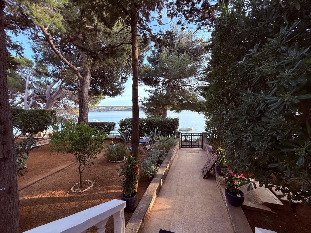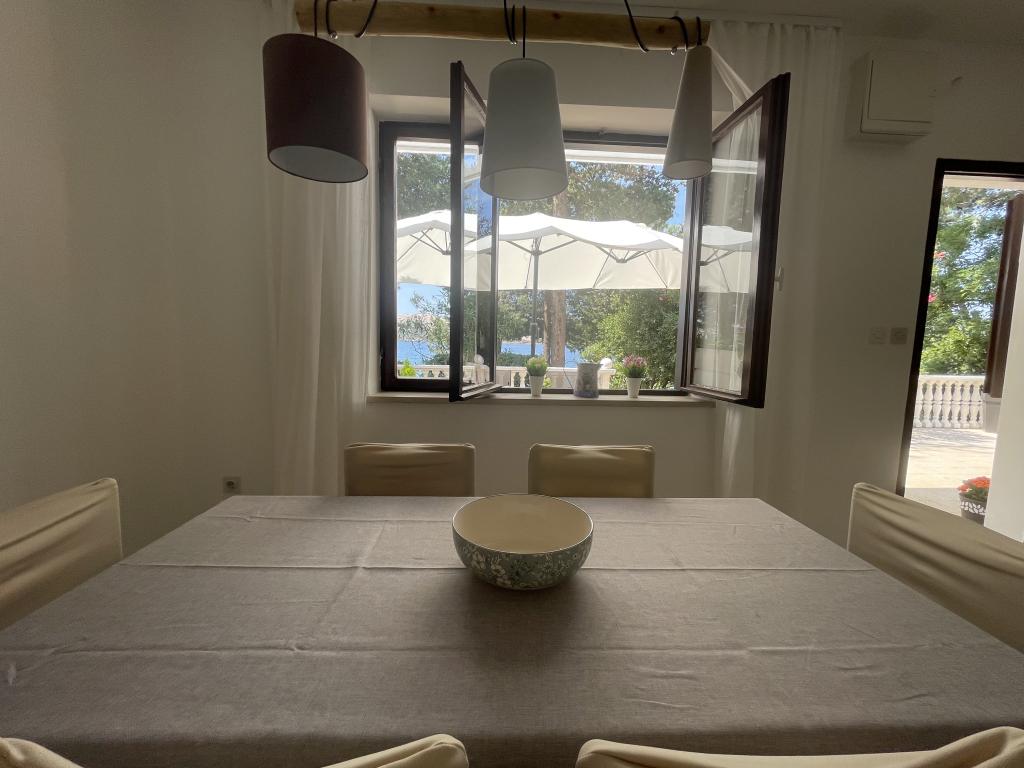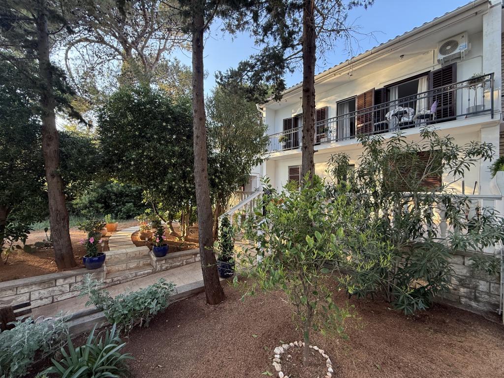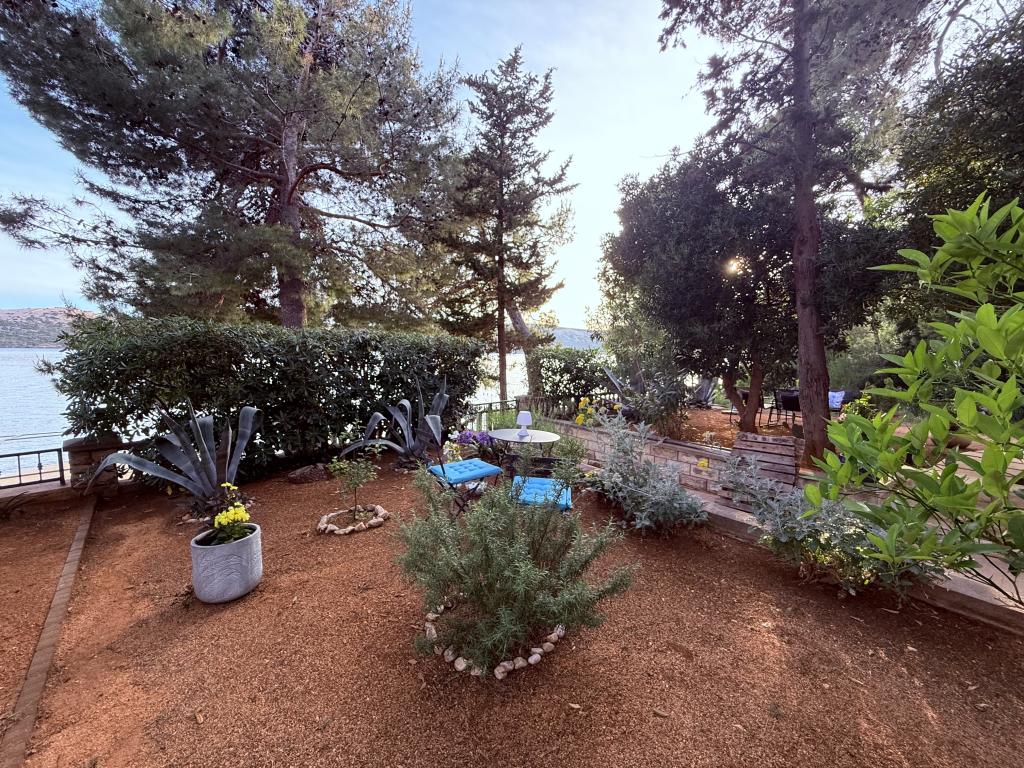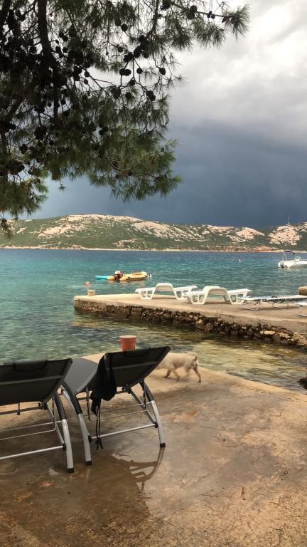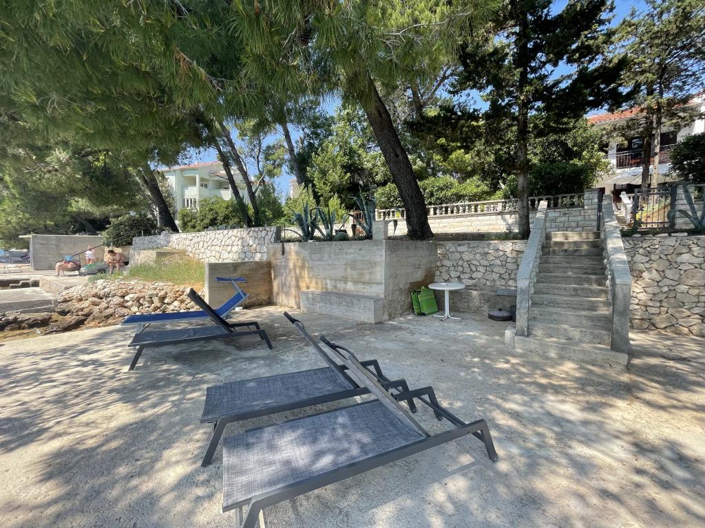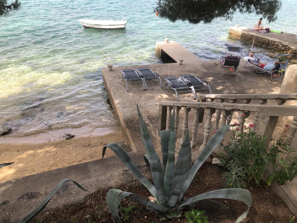 Mind a 4 apartmanhoz tartozik egy privát strand a ház előtt, nyugágyakkal, zuhanyzóval és fenyőárnyékban. 1. Az A4+2 apartman egy romantikus ház földszintjén található, az első sorban a tengertől (10 m). Két hálószobával és egy kanapéággyal rendelkezik a nappaliban. Az apartmanhoz saját, nagy terasz tartozik, gyönyörű kilátással a tengerre. Ideális gyermekes családok és akár 5 fős baráti társaságok számára is. Lehetőség van az A4+1 apartman bérlésére az első emeleten ugyanabban a házban, és az egész ház használatára. 2. Az A4+1 apartman az 1. emeleten 2 hálószobával és egy pótággyal rendelkezik a nappaliban. Erkéllyel, mesés kilátással és egy 20 m2-es saját terasszal rendelkezik. 3. A stúdióapartman egy másik kisebb házban található, a kertben, az első ház mögött, 30 méterre a tengertől. 4. Az A2+2 apartman egy másik kisebb házban található, a kertben, az első ház mögött, 30 méterre a tengertől. A béke és a magánélet, különösen júniusban és szeptemberben, ezeknek az apartmanoknak az előnyei, amelyekről sokan azt mondják, hogy olyanok, mint a mennyország a földön. Háziállatok nem megengedettek (kistestű kutyák, maximum 7 kg-ig, kérésre).