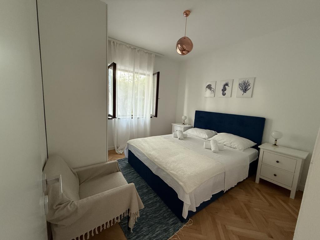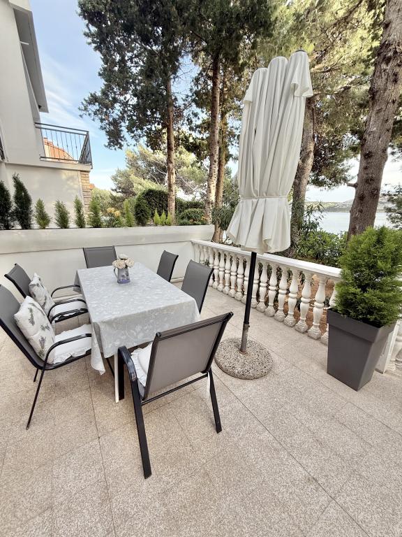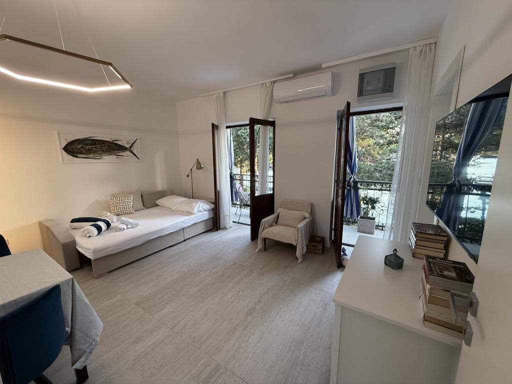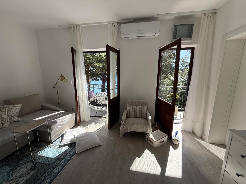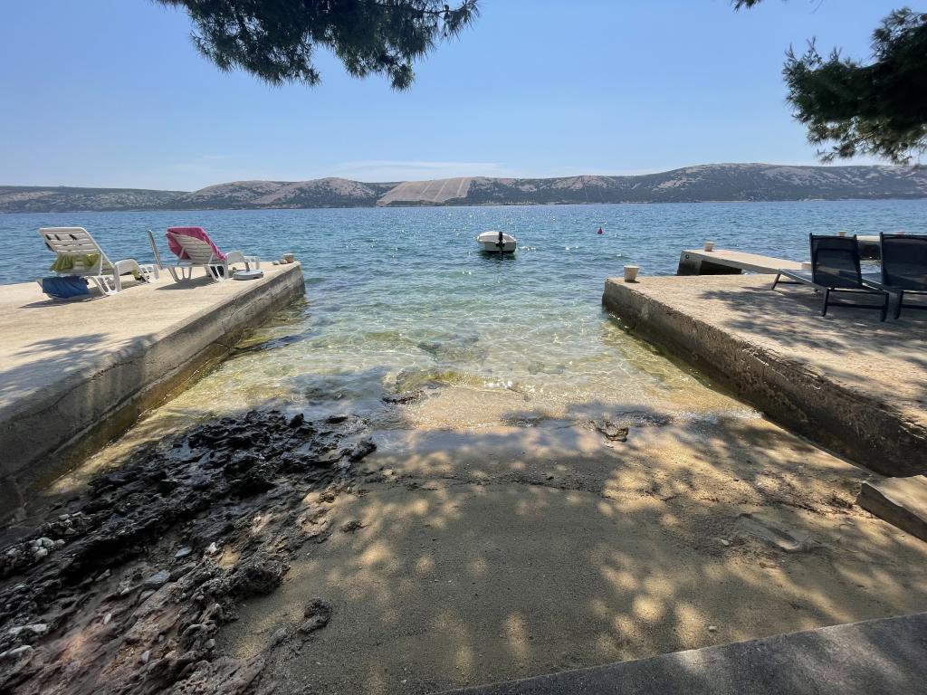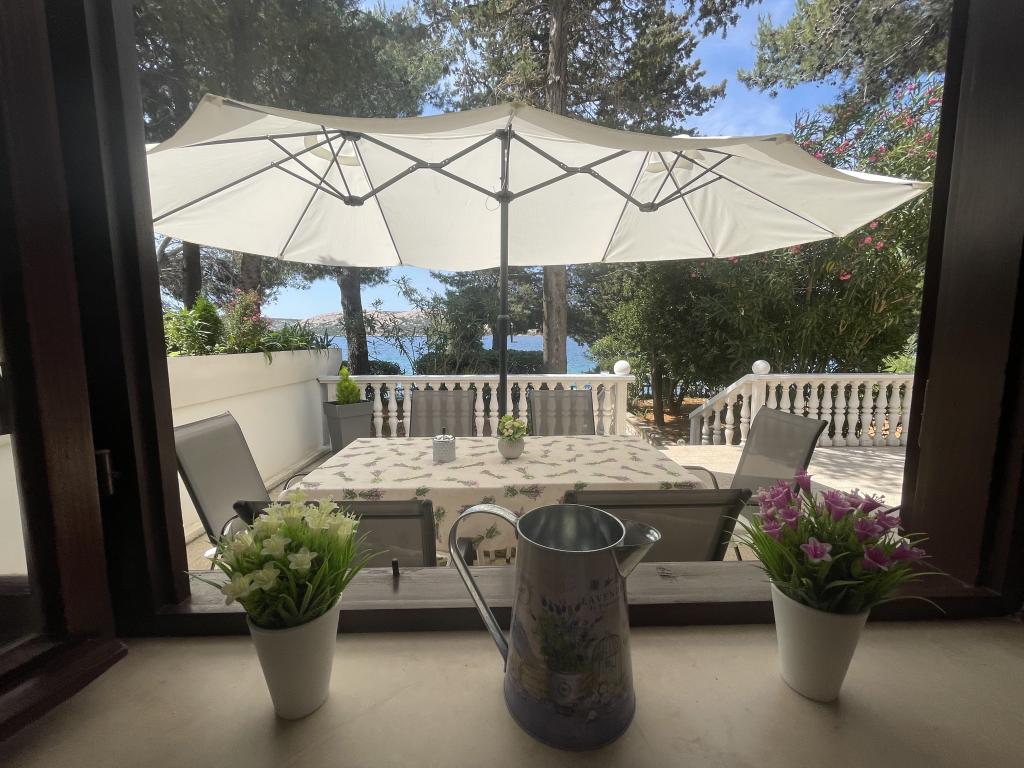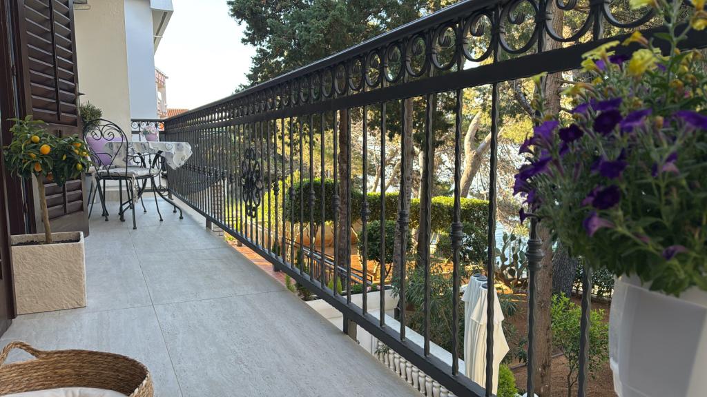 Mind a 4 apartmanhoz tartozik egy privát strand a ház előtt, nyugágyakkal, zuhanyzóval és fenyőárnyékban. 1. Az A4+2 apartman egy romantikus ház földszintjén található, az első sorban a tengertől (10 m). Két hálószobával és egy kanapéággyal rendelkezik a nappaliban. Az apartmanhoz saját, nagy terasz tartozik, gyönyörű kilátással a tengerre. Ideális gyermekes családok és akár 5 fős baráti társaságok számára is. Lehetőség van az A4+1 apartman bérlésére az első emeleten ugyanabban a házban, és az egész ház használatára. 2. Az A4+1 apartman az 1. emeleten 2 hálószobával és egy pótággyal rendelkezik a nappaliban. Erkéllyel, mesés kilátással és egy 20 m2-es saját terasszal rendelkezik. 3. A stúdióapartman egy másik kisebb házban található, a kertben, az első ház mögött, 30 méterre a tengertől. 4. Az A2+2 apartman egy másik kisebb házban található, a kertben, az első ház mögött, 30 méterre a tengertől. A béke és a magánélet, különösen júniusban és szeptemberben, ezeknek az apartmanoknak az előnyei, amelyekről sokan azt mondják, hogy olyanok, mint a mennyország a földön. Háziállatok nem megengedettek (kistestű kutyák, maximum 7 kg-ig, kérésre).