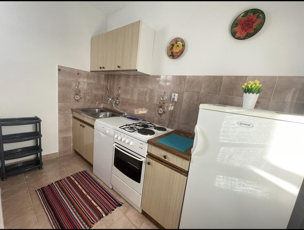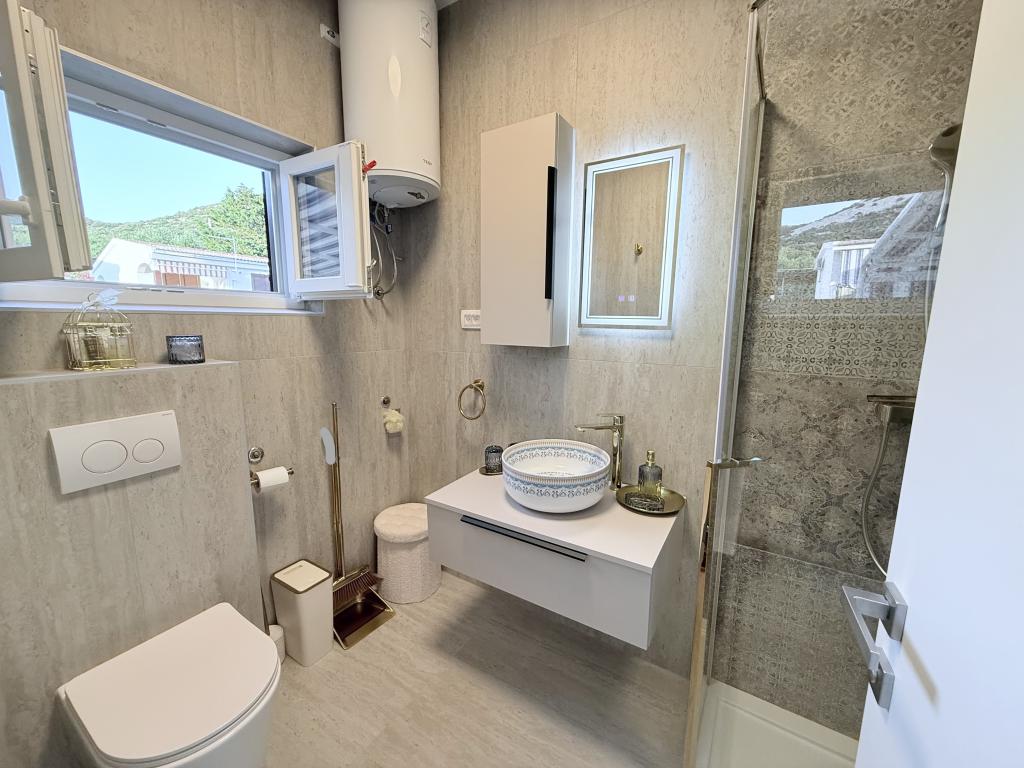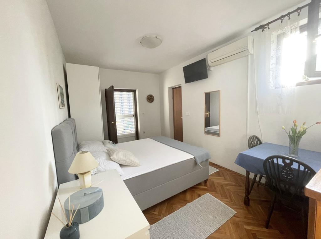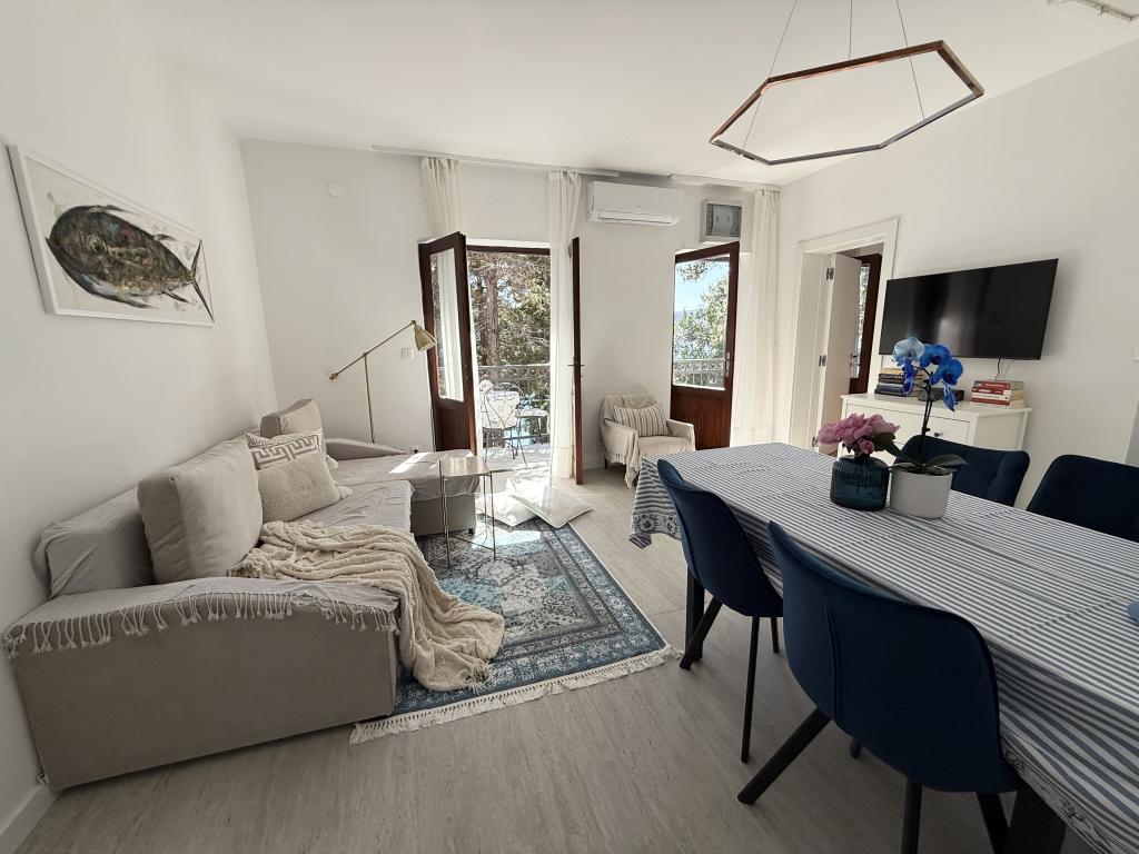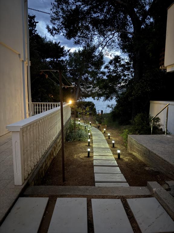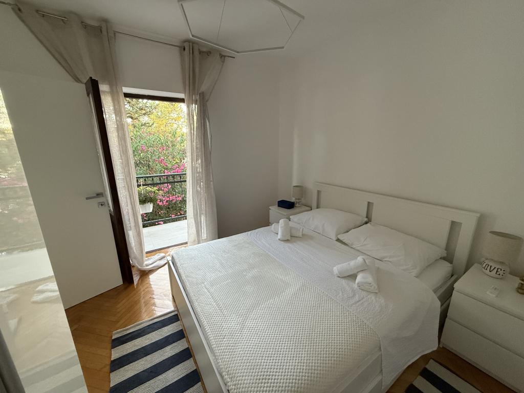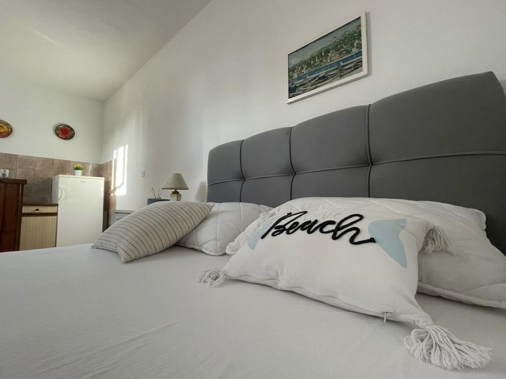 Mind a 4 apartmanhoz tartozik egy privát strand a ház előtt, nyugágyakkal, zuhanyzóval és fenyőárnyékban. 1. Az A4+2 apartman egy romantikus ház földszintjén található, az első sorban a tengertől (10 m). Két hálószobával és egy kanapéággyal rendelkezik a nappaliban. Az apartmanhoz saját, nagy terasz tartozik, gyönyörű kilátással a tengerre. Ideális gyermekes családok és akár 5 fős baráti társaságok számára is. Lehetőség van az A4+1 apartman bérlésére az első emeleten ugyanabban a házban, és az egész ház használatára. 2. Az A4+1 apartman az 1. emeleten 2 hálószobával és egy pótággyal rendelkezik a nappaliban. Erkéllyel, mesés kilátással és egy 20 m2-es saját terasszal rendelkezik. 3. A stúdióapartman egy másik kisebb házban található, a kertben, az első ház mögött, 30 méterre a tengertől. 4. Az A2+2 apartman egy másik kisebb házban található, a kertben, az első ház mögött, 30 méterre a tengertől. A béke és a magánélet, különösen júniusban és szeptemberben, ezeknek az apartmanoknak az előnyei, amelyekről sokan azt mondják, hogy olyanok, mint a mennyország a földön. Háziállatok nem megengedettek (kistestű kutyák, maximum 7 kg-ig, kérésre).