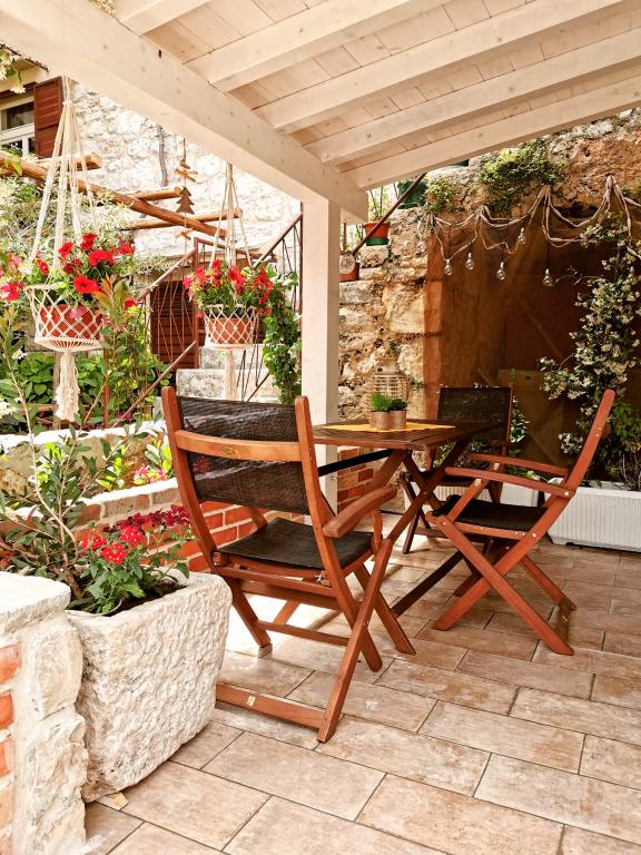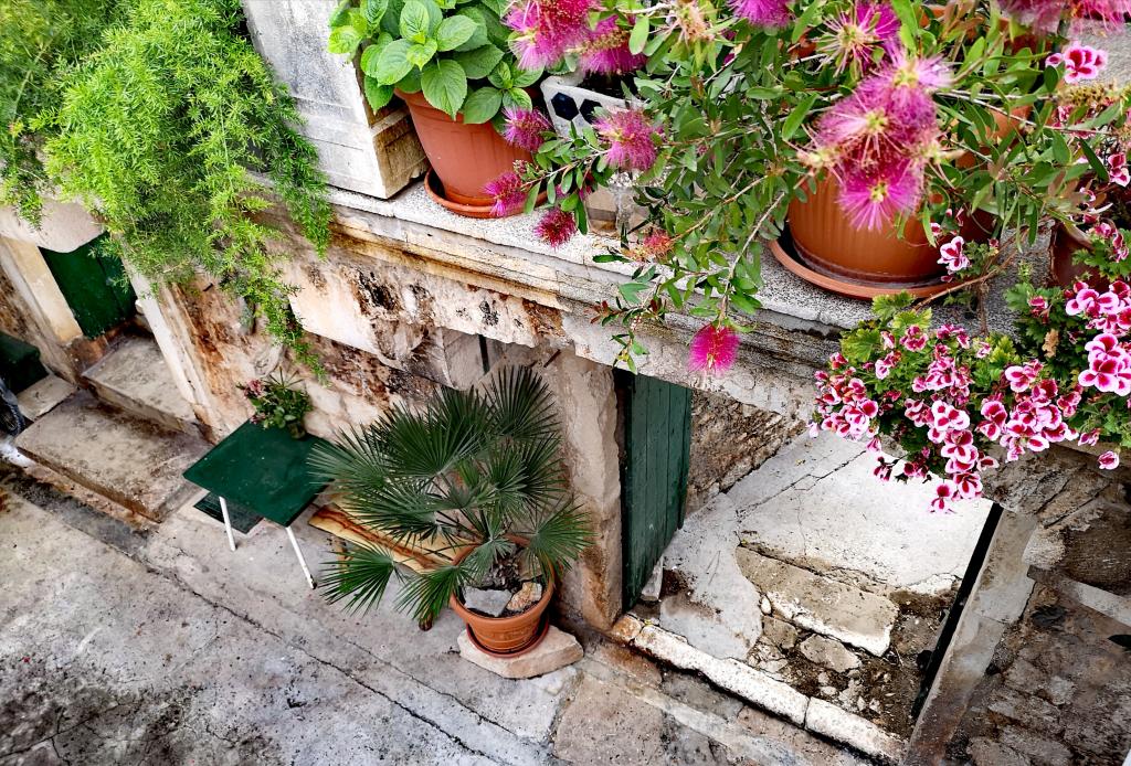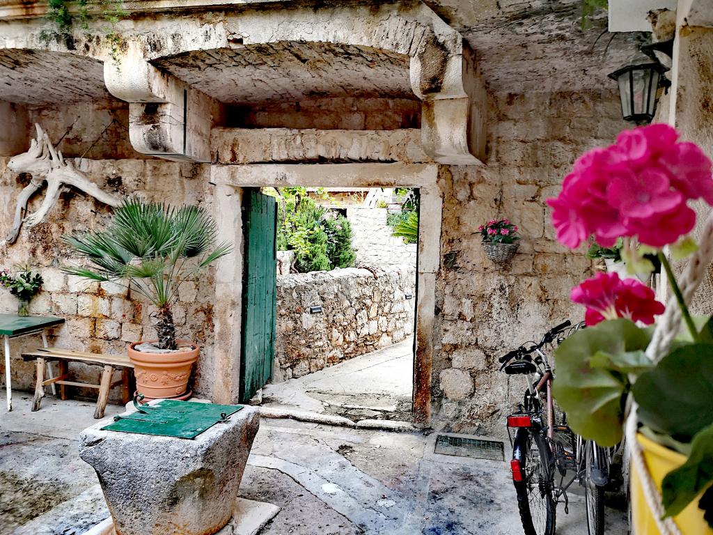 Apartman az Óváros szívében, festői, csendes, zsákutcában található. Zöldség, csend, régi kőházak, kastély és madarak vesznek körül. Felébreszti a levendula és a rozmaring illata, amely vagy vadon nő, vagy maga a ház mellé ültetik. A szállást elhagyva egy percnyi sétára van a hely szívének szűk kőutcáitól, ahol minden élet zajlik. Ha szeretné megtapasztalni, milyen egy szigeten, egy eredeti kőházban élni, békében, de mégis egy lépésre a városi környezet minden előnyétől – jó helyen jár! Nagyon örülünk, és jövőre biztosan visszatérünk. Azt hiszem, megtaláltuk a mi kis nyári oázisunkat. Köszönöm Tonća!