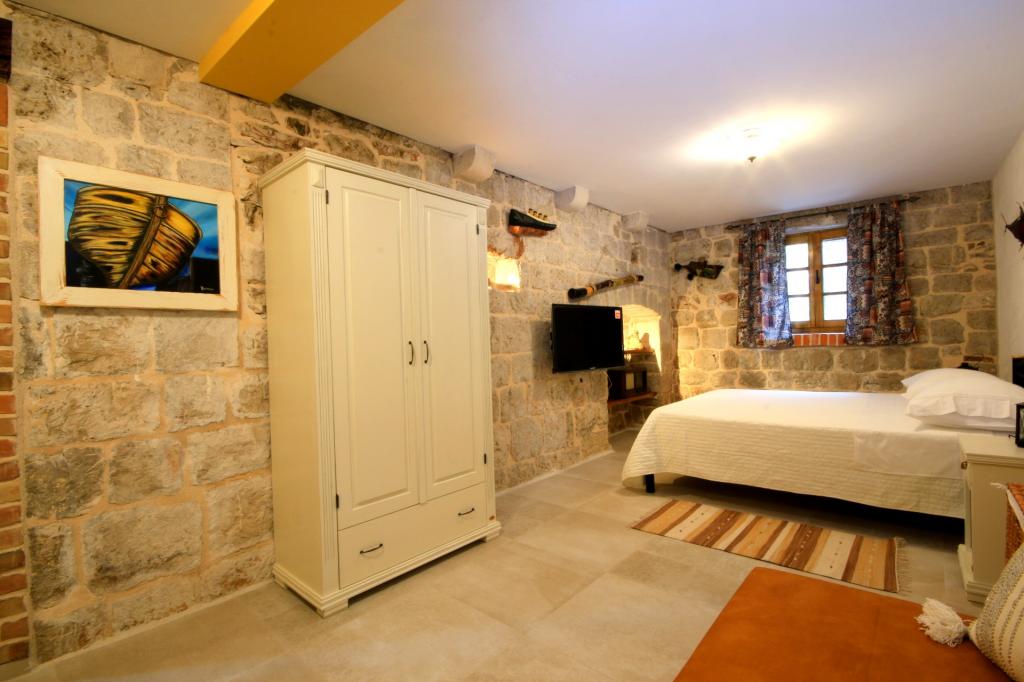 Apartmanok Anitque és Hanibal, A kúria része Hanibal Lucić, egy híres nemes és költő, aki 1485 - től élt. 1553 g. Ebből az időszakból az az objektum is található, amelyben a lakás található. A kastély központi része egy szép, kővel körülvett udvar. Rendkívüli jelentősége miatt a bíróság a Kulturális Minisztérium védelme alatt áll. Apartmanjaink vendégei (összesen 5 ágy) rendelkeznek azzal a kiváltsággal, hogy részesei lehetnek ennek az egyedülálló helynek. Az Antique apartman 2 fő részére és Hanibal apartman 2 fő részére, de maximum 3 fő elszállásolására alkalmas. Mindkét lakosztály teljes kényelmet biztosít. A természetes anyagokból készült műalkotásokkal díszített, sok szeretettel és figyelemgel berendezett, mindnyájan a vágyunk, hogy vendégeink kényelmesen érezzék magukat! A légkondicionálás, az internet, a műholdas TV ... kellemes időtöltést kínál a régi kőfalak között. A vendégek rendelkezésére állnak két kerékpár egy apartmanonként, amellyel mindegyik elérhető.
