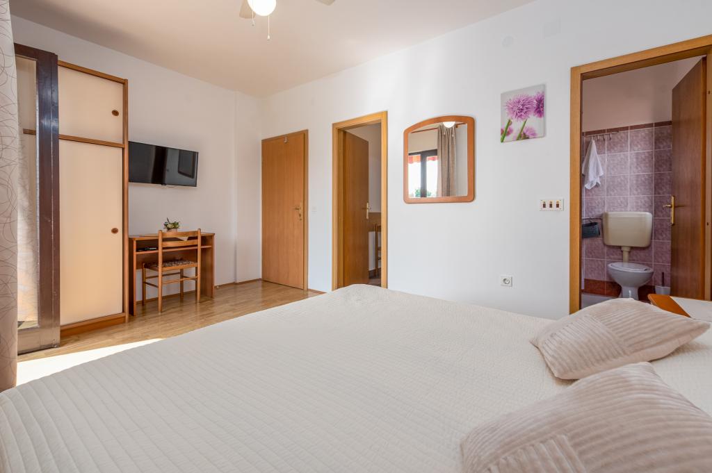 Szóval ezt az apartmant mind a tíz fő részére ajánlanám. Több család is megszállt ott, így az összes szobát értékelni tudom. Az apartmanok hangulatosak és tiszták. Minden apartmanban van légkondicionáló. A konyhasarokban minden megtalálható, amire szükség van. Edények, serpenyők, poharak, pont minden. A tulajdonos kicserélte nekünk a törölközőket, amit nagy plusznak tartok. Ami a külsőt illeti, nagyszerű volt számunkra, különösen a gyerekeink számára. Hinta, trambulin, ülőhely a kertben, zöld növényzet és egy nagy udvar. Ami pedig a tulajdonost illeti, egy csodálatos, kedves, segítőkész és mindig mosolygós nő. Még soha nem találkoztam ilyen emberrel egy apartmanban sem. Csak ajánlani tudom, nagyszerű volt számunkra, és hiszem, hogy visszatérünk oda még.