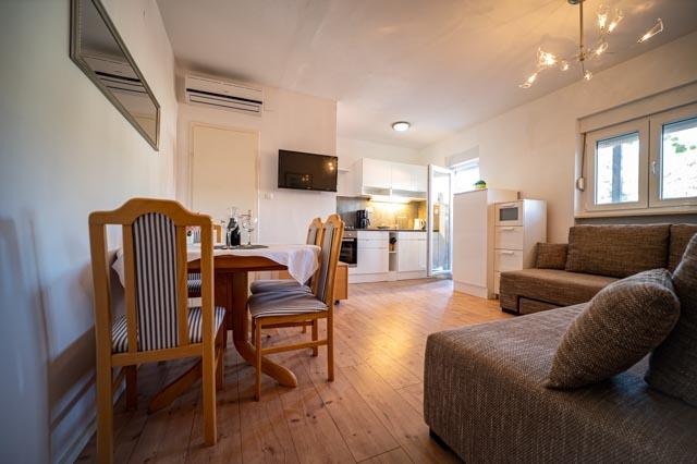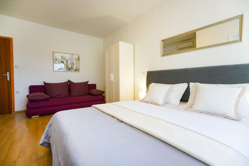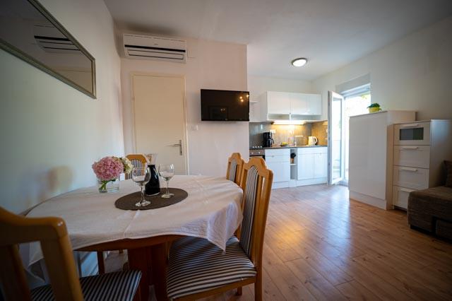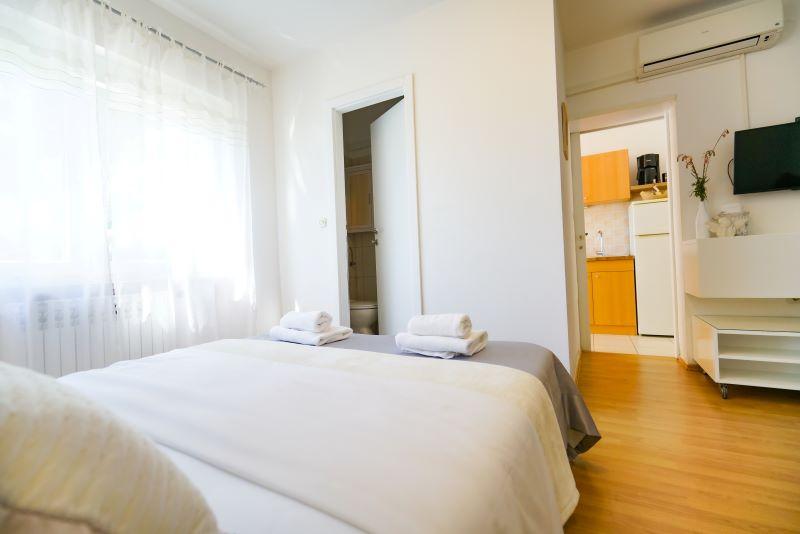 Csak 30 méterre az újonnan felújított Mala Makarska strandtól! Az Ero apartmanok és szobák Sukošanban találhatók, mindössze néhány méterre a strandtól, és lehetőséget kínálnak vendégeiknek egy békés családi nyaralásra. A létesítményben 7 szállásegység található. Kínálunk Önnek 4 apartmant, egy stúdió apartmant és két szobát. Minden apartmanhoz tengerre vagy kertre néző terasz tartozik. Az apartmanok teljesen funkcionális konyhával, műholdas LCD TV-vel, légkondicionálóval, WC-vel és nagy franciaággyal rendelkeznek. A szobákban megszálló vendégek használhatják a szabadtéri közös konyhát. Parkolás és WI-FI internet biztosított minden apartmanhoz vagy szobához. Az udvaron egy nyári konyha is található grillezővel, mely minden vendég rendelkezésére áll. Az apartman közelében üzletek, éttermek, tengerparti bárok, játszóterek, gyorsétterem...