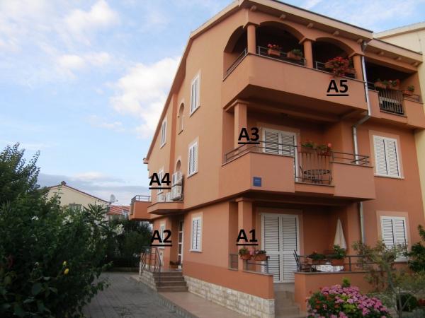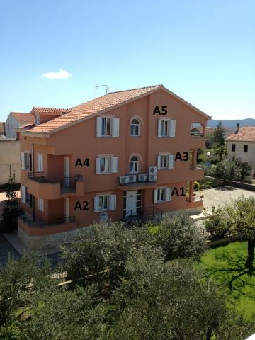 Teljesen berendezett és felszerelt apartmanok Sukosan csendes részén, 90 méterrel a fő strand felett és 300 méterre a központtól. A ház 5 apartmanból áll A1 (3 + 1, 45m2); A2 (3 + 1, 45 m2); A3 (3 + 1, 45 m2); A4 (3 + 1, 45m2) és A5 (4 + 2, 75m2) erkélyekkel, saját bekerített parkolóval és grillezési lehetőséggel az udvarban, amely a lakáshasználók számára készült. Minden apartmanban légkondicionáló, LED SATTV, hűtőszekrény fagyasztóval, ingyenes Wi-Fi internet, mikrohullámú sütő, vízforraló, kávéfőző, hajszárító, stb.,,,,,