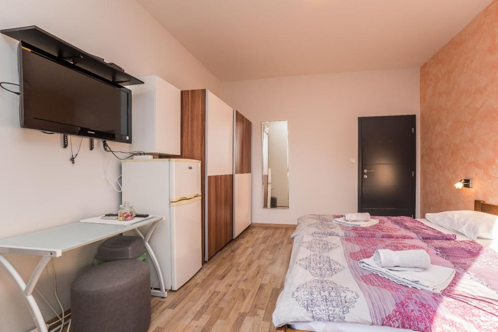 Legyen a tengerpart a nappalid Az Apartments Malenica Sukošanban található, mindössze néhány méterre a strandtól, és nyugodt családi nyaralást kínál vendégeinek. A létesítmény 11 szállásegységgel rendelkezik. 2 mobilházat, 7 apartmant és 1 szobát kínálunk. Minden apartmanhoz nagy terasz tartozik, (legtöbbjük) tengerre néző kilátással. Az apartmanokban teljesen felszerelt konyha (hűtőszekrény, mikrohullámú sütő, tűzhely, edények...), LCD műholdas TV, légkondicionáló, WC, nagyméretű franciaágyak találhatók. Parkolás és WI-FI internet minden apartmanhoz és szobához biztosított. Az apartman közelében üzletek, éttermek, strandbárok, játszóterek, gyorséttermek találhatók... Az apartmanon belül található recepció egész nap nyitva tart, és kérhet információt az Önt érdeklő dolgokról, valamint pénzt válthat, kirándulásokat szervezhet stb.