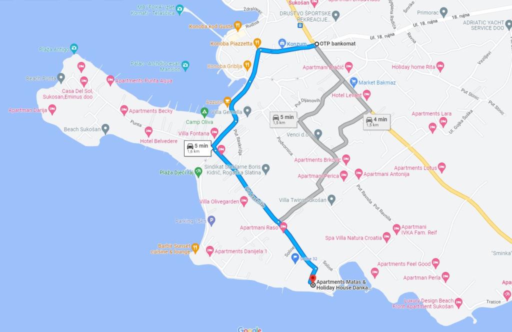A Matas A1 és A3 (4 fő részére), valamint az A2 (2 fő részére) apartmanok a földszinten találhatók. A Matas B1, B2, B3, B4, B5 (4 fő részére) apartmanok az első emeleten találhatók, kétszintesek. A tágas nappali konyhával és étkezővel, valamint a teraszra nyíló nagy ajtók tökéletes helyet biztosítanak a kikapcsolódáshoz. Az apartmanokban mindent megtalál, amire szüksége van a nyaralásához. Az apartmanok teljesen légkondicionáltak, és műholdas TV-vel, vezeték nélküli internettel, tűzhellyel, hűtőszekrénnyel és edényekkel felszereltek. Az apartmanok egy hálószobából (2 fő részére), nappaliból (kanapé 2 fő részére), konyhából, fürdőszobából és egy tágas teraszból állnak, ahonnan gyönyörű kilátás nyílik a zadari szigetcsoportra. Az A2 apartman egy stúdió 2 fő részére. Szükség esetén 2 éves korig gyermekágyat is biztosítunk.