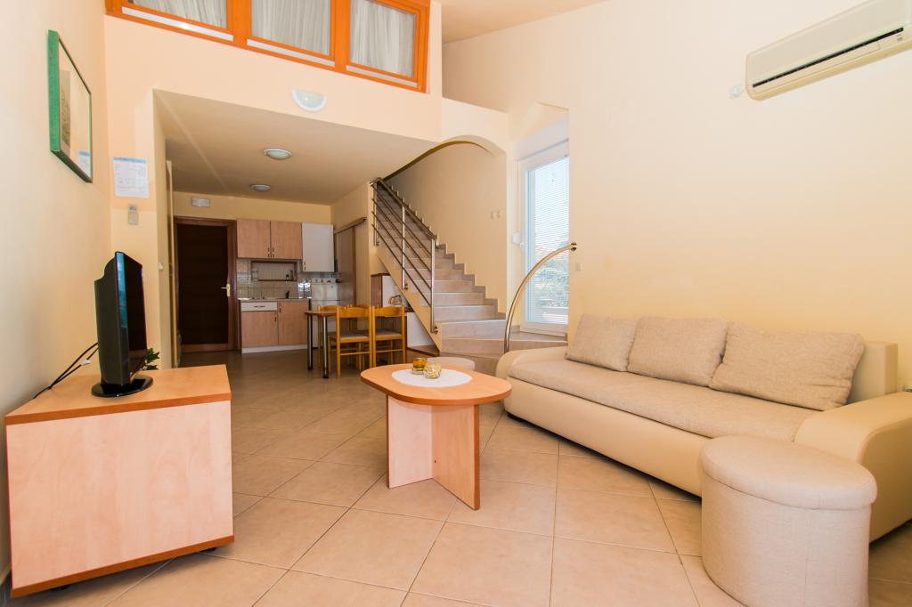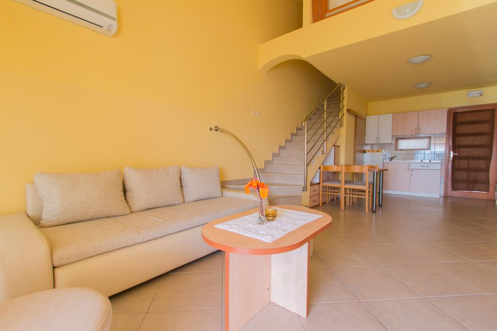 A Matas apartmanok mindössze néhány méterre találhatók a strandtól! A privát strand csendes, jól karbantartott, kavicsos. A homokos strand körülbelül 500 méterre található. Minden apartman egy hálószobával (a stúdióapartmanban csak nappali van), nappalival, fürdőszobával, konyhával, terasszal vagy erkéllyel rendelkezik, és maximum 4 fő elszállásolására alkalmas. Minden apartman 64 m2-es, két szobás (hálószoba és nappali/hálószoba), kivéve az A2-es apartmant (32 m2, maximum 2 fő - hálószoba/nappali), légkondicionálóval, műholdas TV-vel, Wi-Fi-vel és kávéfőzővel felszerelt. A házban mosókonyha is található mosógéppel. A strand melletti kertben kerti zuhany és grillező található. Az apartmanok teljesen felszereltek evőeszközökkel, tányérokkal, ágyneművel, törölközőkkel, így semmit sem kell magával hoznia.