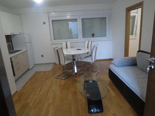 Modern berendezésű apartmanok Sukošan csendes részén találhatók. A strandtól 1 perc, a központtól pedig 10 perc gyalog (kb. 500 méter). Az első bolt is 10 perc sétára található. Minden apartman légkondicionálóval felszerelt. Az apartmanokban törölköző, WC-papír, vízforraló és edények találhatók. A ház előtt nagy parkoló és egy kis gyep található. A vendégek használhatják az udvaron található grillezőt.