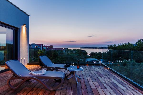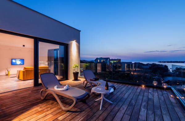 A Vila Punta Aqua fényűzően berendezett, modern és funkcionális stílusban, ideális az olajfolt árnyékolására és a gyönyörű homokos fenekű tengerparton. Csak néhány méterre van a strandtól. Háromszintes. A földszinten egy háromszobás apartman 3 fürdőszobával és egy további WC-vel és egy nagy, 35m2-es terasszal rendelkezik. Az első emeleten egy két hálószobás apartman 2 fürdőszobával és egy további WC-vel. A 37m2-es nagy erkély ideális a pihenésre és a gyönyörű tengerre néző kilátásban. A második emeleten egy luxus egy hálószobás apartman fürdőszobával és egy további WC-vel. Az apartman egy csodálatos tágas erkéllyel rendelkezik, kilátással a tengerre. Ez a villa ideális a gyönyörű tengerre néző kilátáshoz, nyaraláshoz és szocializáláshoz.