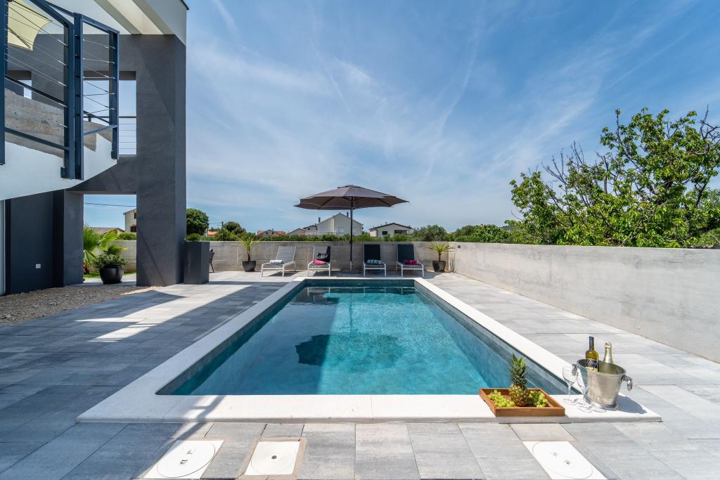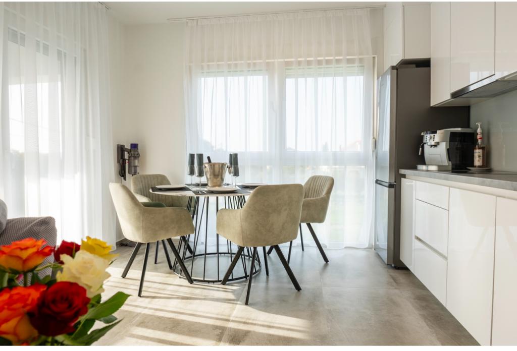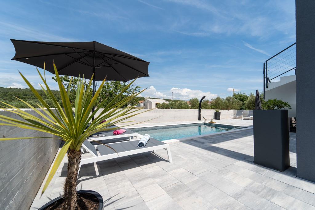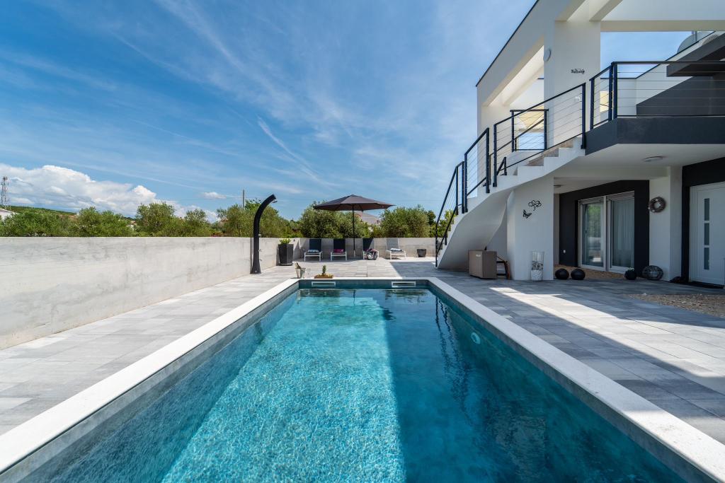 Ez a gyönyörű kiadó ház Sukošan békés és festői környezetében található, ideális családok és párok számára, akik nyaralni szeretnének. Az apartman tágas és világos szobákat, modern berendezésű nappalit, teljesen felszerelt konyhát, valamint kényelmes erkélyt és nagy teraszt kínál, ahonnan kilátás nyílik a természetre, ezen felül fűtött úszómedencét kínálunk vendégeinknek, akik az I. szezonban, azaz a 2026-os szezonban érkeznek. Szeretnénk még több pihenést biztosítani kedves vendégeinknek - ezért örömmel jelentjük be, hogy mostantól masszázskádat (jacuzzit) is kínálunk! A közelben strandok, éttermek és üzletek találhatók, így ez a helyszín tökéletes a helyi látnivalók felfedezéséhez. Minden szükséges kényelmi szolgáltatás biztosított a kellemes tartózkodáshoz, beleértve a Wi-Fi-t, a légkondicionálót és a parkolást. Jöjjön el, és élvezze a felejthetetlen nyaralást!