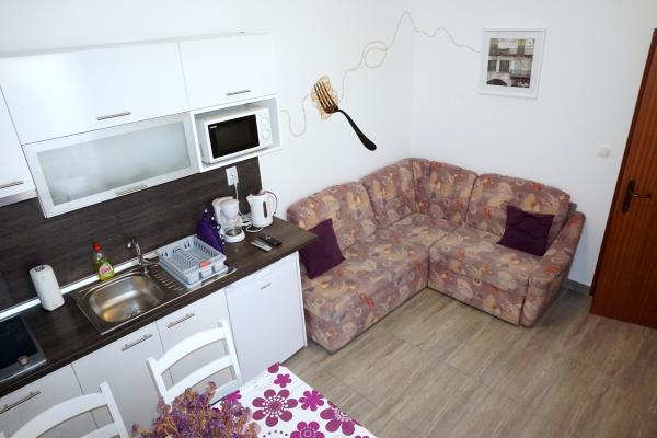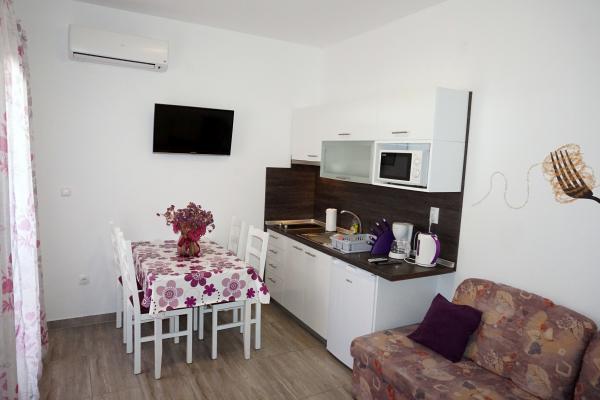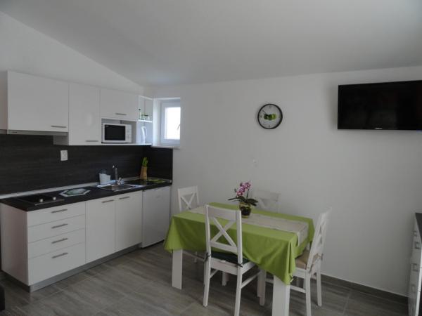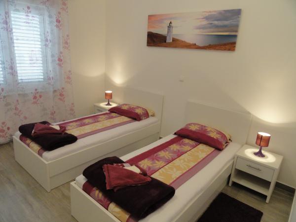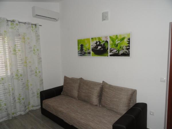 A házban két lakás és három szoba található. Az apartmanok és szobák modernek és ízlésesen berendezettek, és egy 2014-ben teljesen felújított házban találhatók. Az udvaron van egy közös medence napozóval. Minden apartman és szoba saját klímával rendelkezik. Apartmanjaink és szobáink 300 méterre találhatók a Zlatna luka strandtól és 400 méterre a Dalmacija kikötő strandjától, valamint 10 perces sétára Sukošan központjától.