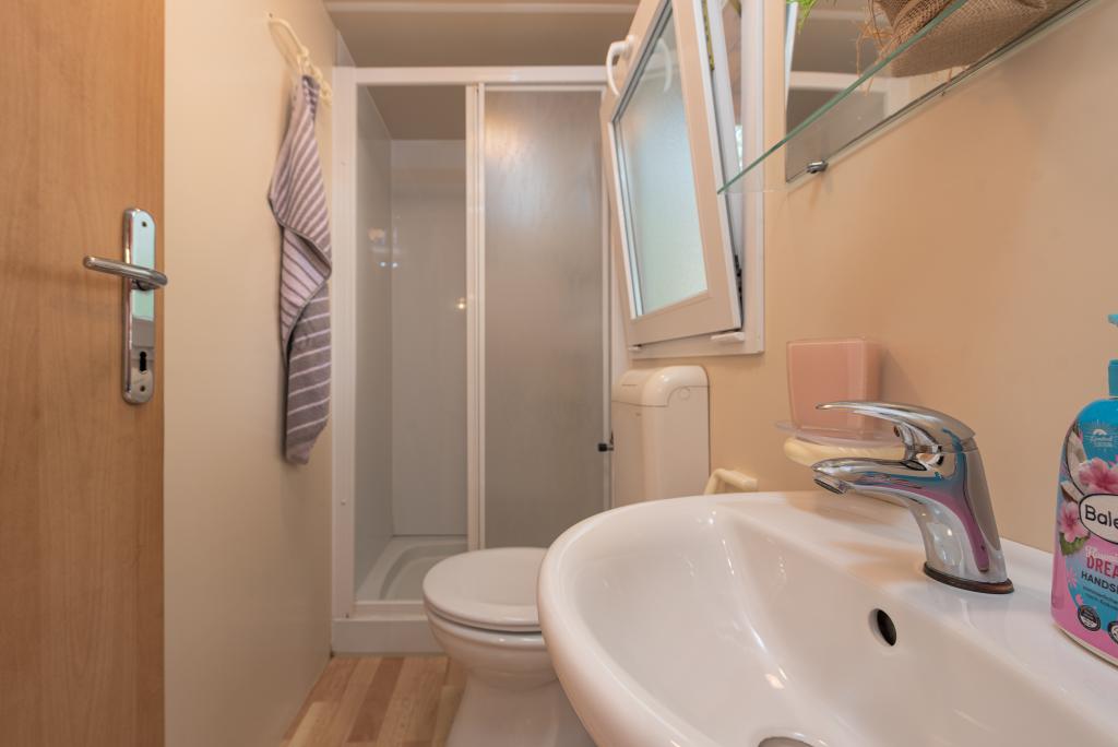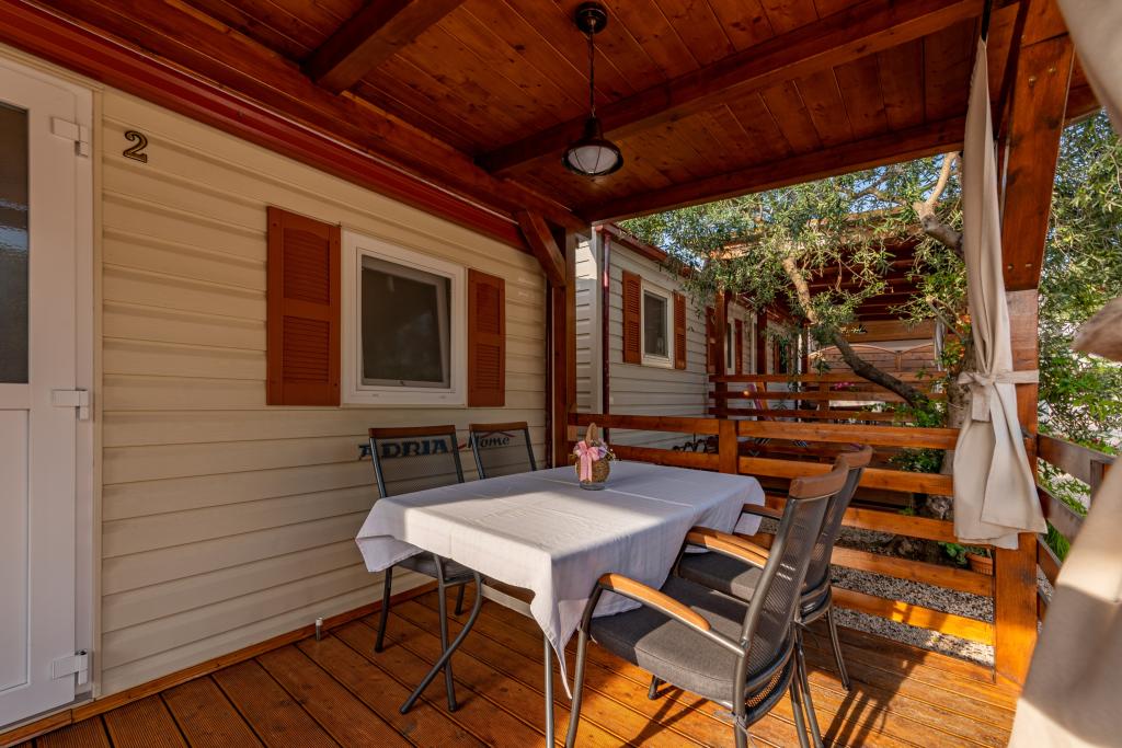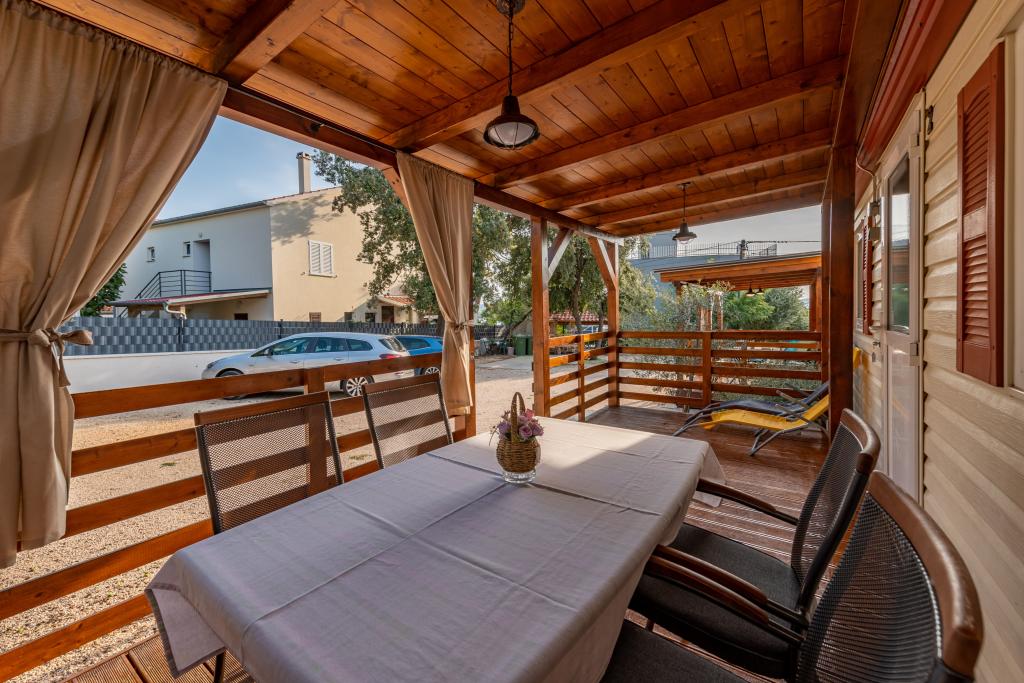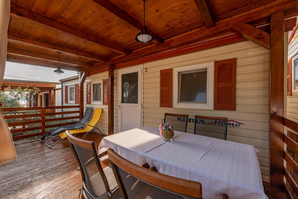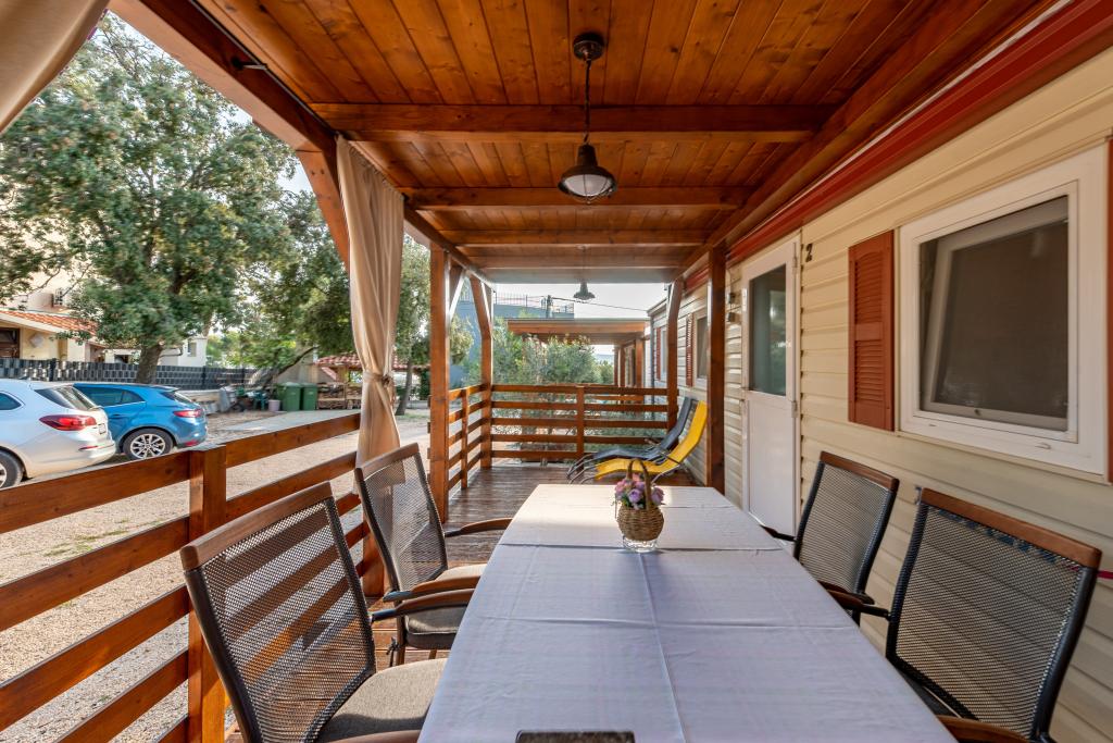 Egy gyönyörűen berendezett mobilház két szobával, minden szobához saját fürdőszoba és WC és nagy terasz tartozik, új úszómedence fűtött sós vízzel, modern és kényelmes napozóágyak, amelyek ingyenesek, és ezen kívül nagyon kedves és barátságos házigazdák akik mindig a rendelkezésedre állnak. Egyszerűen tökéletes.