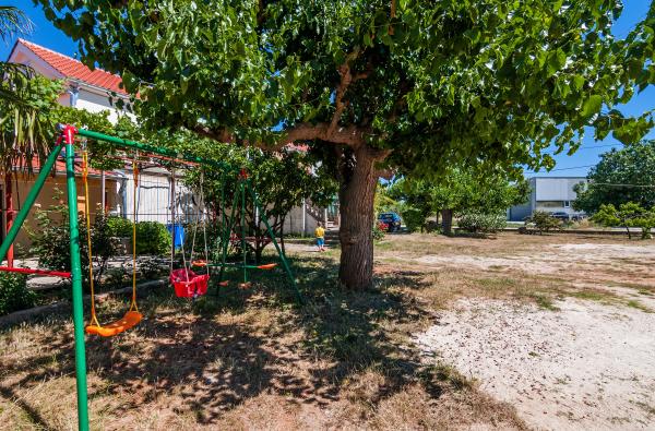 Szép, csendes környéken nélkül a zaj az autók, a gyerekek szabadon szaladgálni az udvaron, és játszani. A strand gyorsan jönnek. A közelben Zadar. Ügyeljen arra, hogy kérje a helyi paradicsom. Édes !;) Javasoljuk !!!!