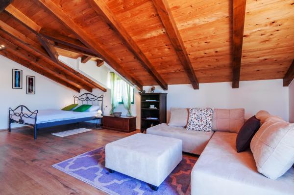 Nyaraló Rita egy újonnan épített létesítmény egy csendes területén Sukosan. Díszített hagyományos kő funkciók, rusztikus bútorok, kandalló a házban ... A földszinten ideális társasági míg alapterület pihenésre és alvásra! A szobában egy franciaágy és egy kanapé, amely alakítható ágy füst. 160 x 200. A házban van egy nagy udvar, saját parkoló, grill, hinta, homokozó ... A ház mellett van egy terasz pergola. Bízunk benne, hogy látni !!