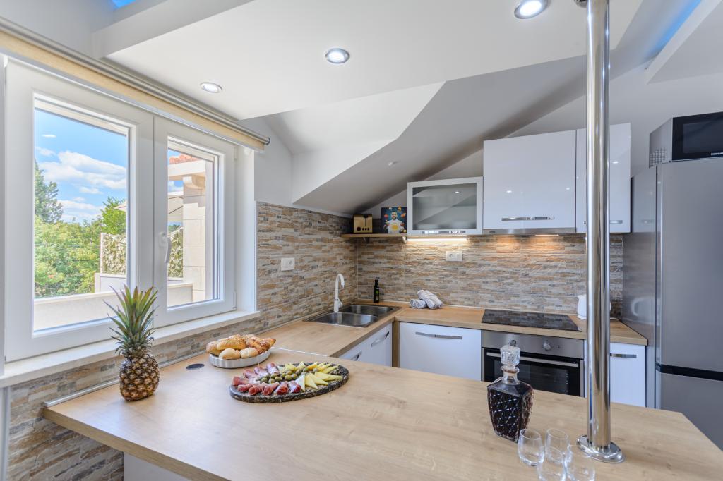 Üdvözöljük bájos apartmanunkban, amely Sumartin központjában található, a gyönyörű Brač-szigeten. Mindössze 100 méterre a tengertől, az apartman a kényelem és a kényelem tökéletes kombinációját kínálja. Az apartman akár 5 vendég (4+1) elszállásolására is alkalmas, és ideális családok, párok vagy barátok számára, akik pihenni és élvezni szeretnék a sziget varázsát. Élvezze a nyugodt tartózkodást gyalogosan elérhető strandoktól, éttermektől és a kikötőtől. Biztonságos parkolóhely is rendelkezésre áll. Várjuk érkezését!