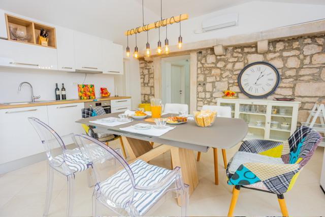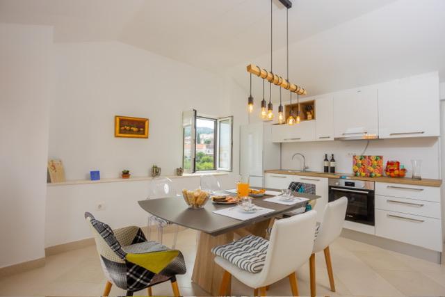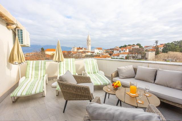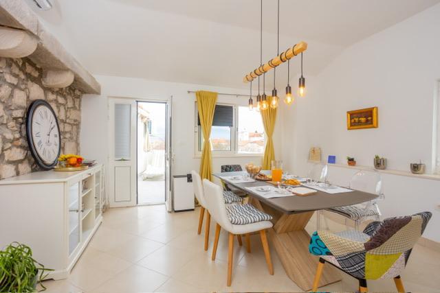 Az apartman Supetar központjában található, 100 méterre a vízparttól, a város összes nevezetessége mellett, 300 méterre a városi strandok első sorától. Az apartman 100m2 alapterületű: két hálószoba egy-egy franciaággyal (160x200), és mindegyik szobához teljesen felszerelt zuhanyzós fürdőszoba tartozik; az apartmanhoz tartozik még egy nagy nappali 2 pótággyal (120x200 és 160x200), melyhez saját fürdőszoba, majd konyha és egy gyönyörű terasz is tartozik, kilátással a városra és a kikötőre. Az apartman mosógéppel, mosogatógéppel, 3 klímaberendezéssel, 2 TV-vel, WIFI-vel, és minden egyéb géppel felszerelt, ami ahhoz szükséges, hogy otthon érezze magát, és egy kellemes és kellemes nyaralást eltölthessen. Ingyenes parkolás. A 20. század elején Ignjata Job horvát expresszionista festő lakott és készítette legsikeresebb műveit házunkban, a mai lakás környékén. A lakás 2021-ben lett felújítva.