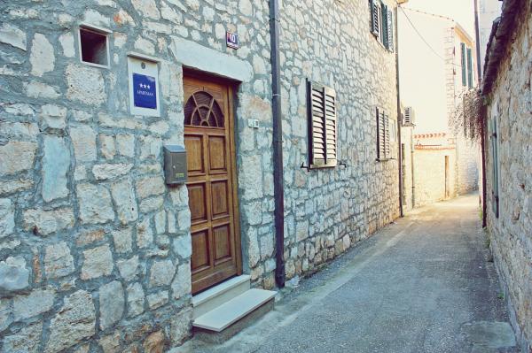 Az apartman található, a központban, a régi város. Supetar. Waterfront és a tenger érhető el két perc alatt. Bár a központban, nyugodt, csendes, mivel nem található utak közelében. A lakás fel van szerelve ágynemű, törölköző, konyhai törlőkendők, WC papír, szappan. A konyha teljesen ételek, és abban az esetben, hogy valami hiányzik a tulajdonosok állnak rendelkezésre.