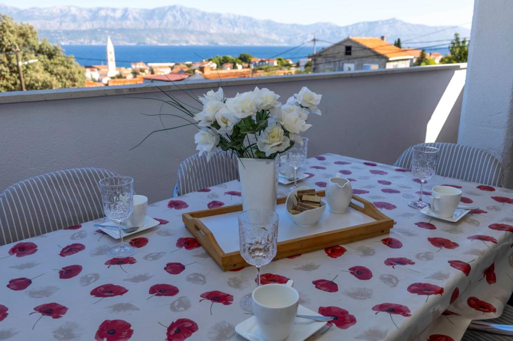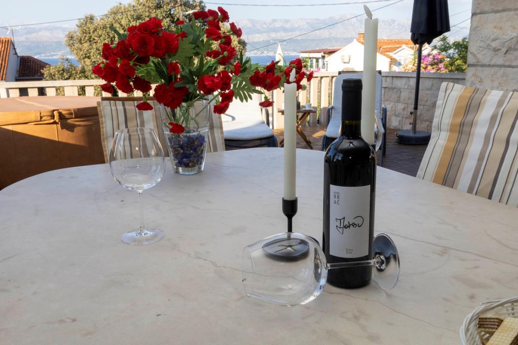 Lakossági adót az az ár tartalmazza.Ingyenes transzfer érkezéskor a kompkikötő Supetar! - Csak küldje el nekünk a pontos érkezési idejét e-mailben vagy telefonon, a mobil telefon, ingyenes Wi-Fi internet a házban, a welcome drink, friss ágynemű, takaró és törölköző, terasz, gyönyörű kilátással a tengerre és az egész panoráma a városra és a komp a parttól a Trogir Makarska, ingyenes térképek, információk, utazási tanácsadás és segítségnyújtás utazások megszervezésében, ingyenes csomagmegőrző késői kijelentkezés, a személyzet beszél angolul, Biblijoteka, parkoló, mosoda és szárító mosoda készülő vacsora, felfedezni a város és a sziget