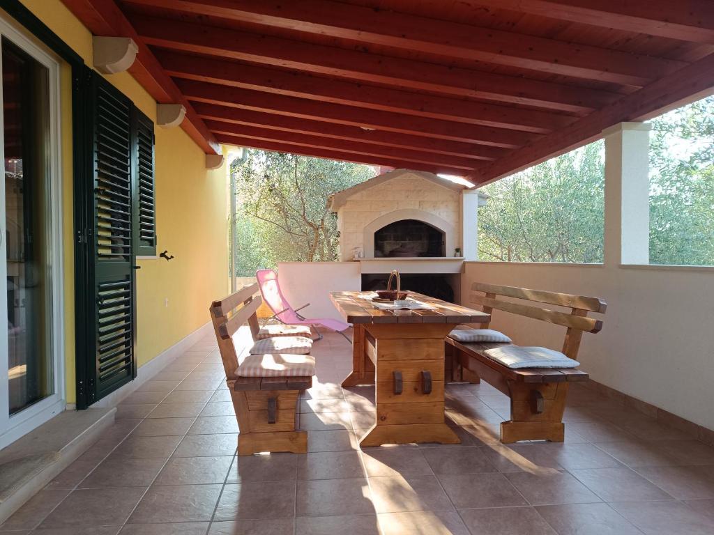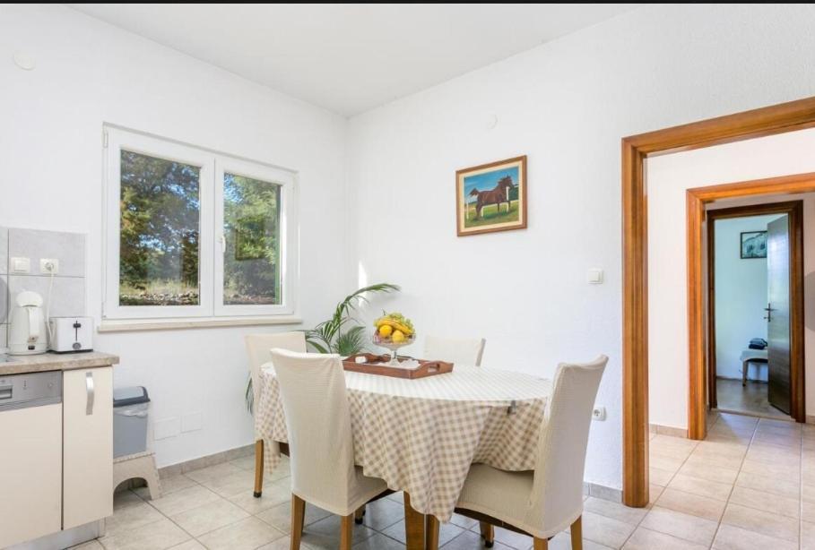 Egy mesebeli ház csendes helyen, mindössze 200 méterre a tengertől és a strandtól. A gyönyörű és tágas, nagy terasz kő kandallóval varázslatos kényelem és béke érzést nyújt. Alkalmas magán- és üzleti összejövetelekre, valamint a kikapcsolódás felejthetetlen pillanataira. Nagy kert és tágas udvar parkolóhelyekkel. A ház állatbarát. Fel van szerelve minden háztartási géppel, klímával, hidegebb téli napokon fatüzelésű kályha és konnektoros fűtés is. ingyenes wifi és parkolás. Kerékpárt és kajakot is kínálunk. Kérdéseikkel, kéréseikkel szívesen állok rendelkezésére.