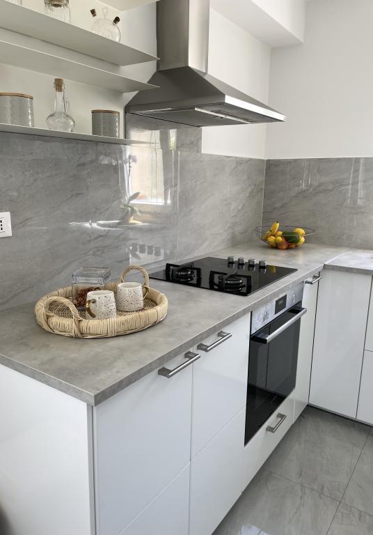 Teljesen felszerelt apartman egy csendes környéken, 50 méterre a tengertől és a strandtól, valamint az első kávézótól. 5 perc sétára a központtól.