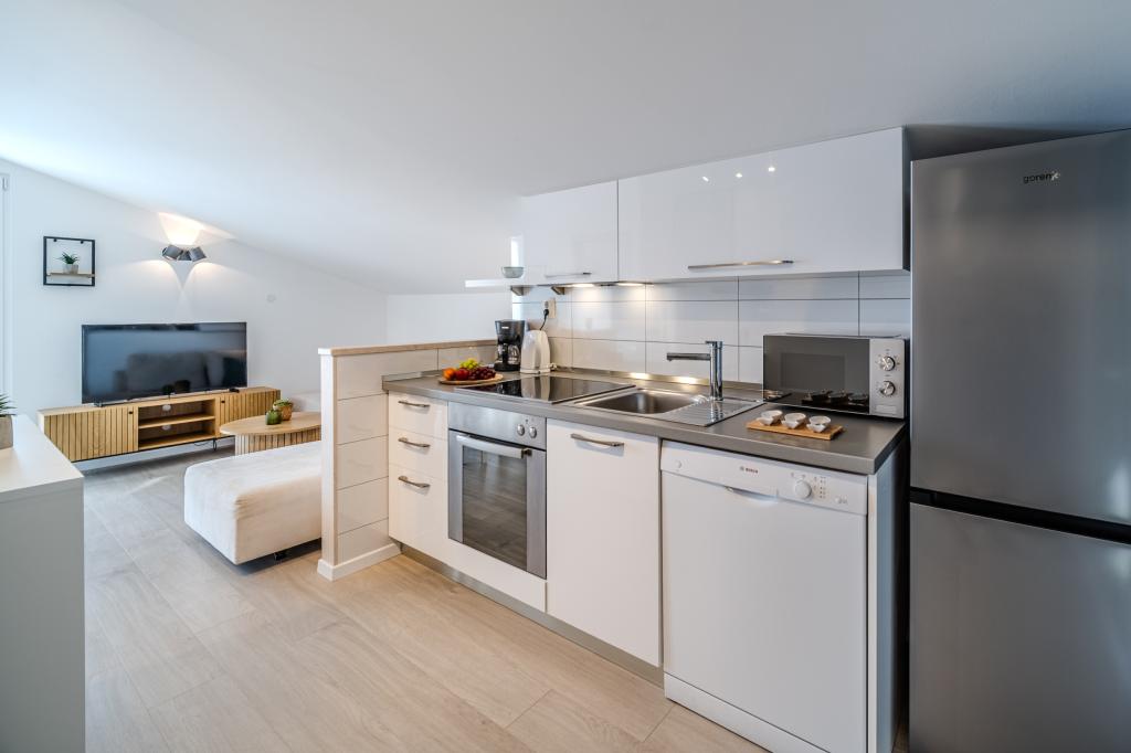 Szép és tiszta apartman gyönyörű kilátással. Társas és barátságos házigazdák. Minden ajánláshoz. A központ közel van, az egyik a sok strand közül, amikor leszáll az apartmanból. A használható kerékpárokkal távolabbi öblökbe is be lehet jutni Sajnáljuk, hogy hamarosan indulnunk kell, és biztosan visszatérünk még.