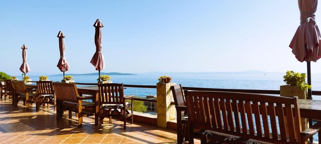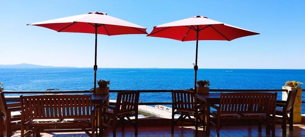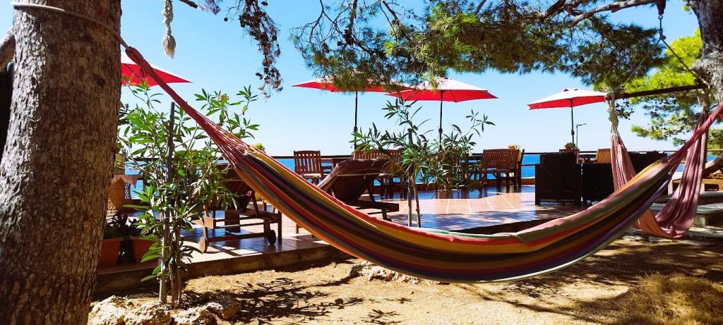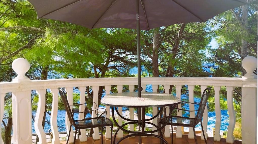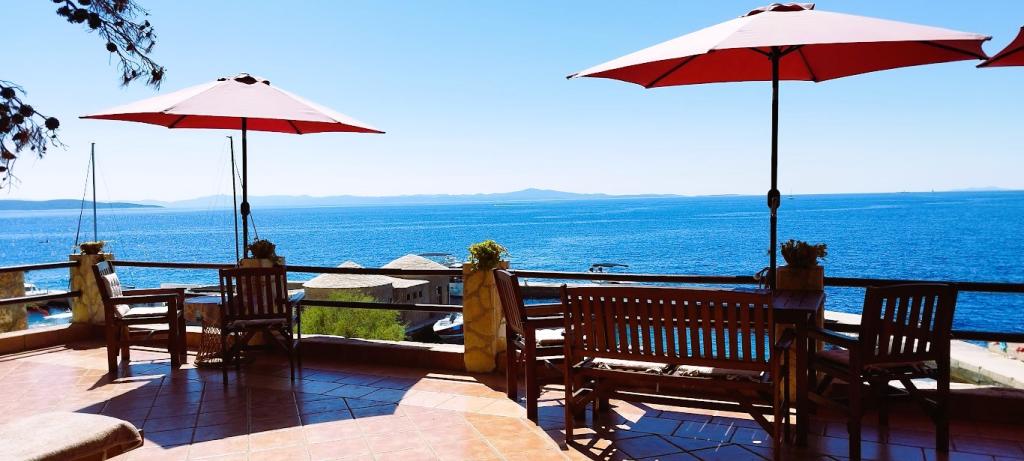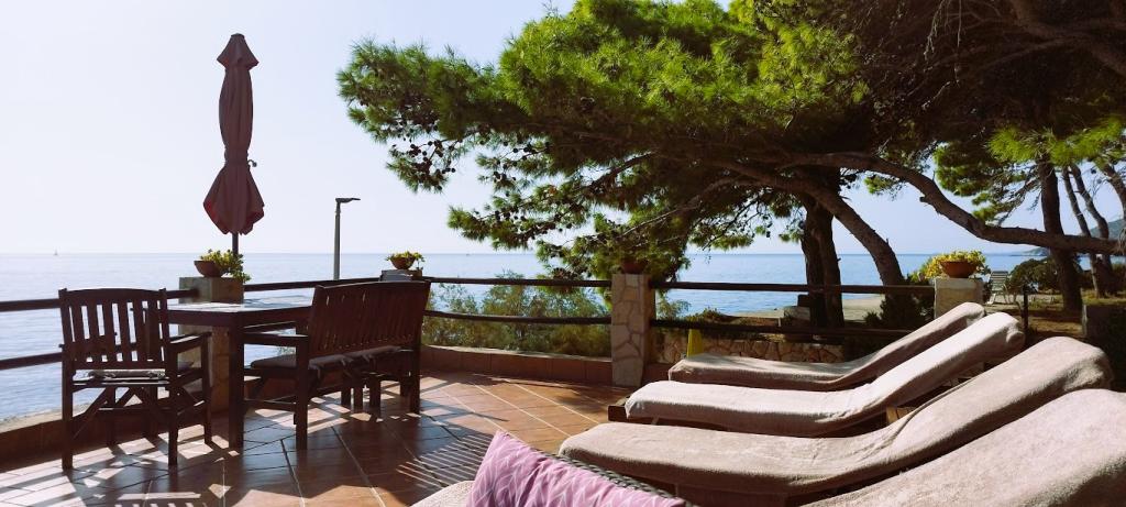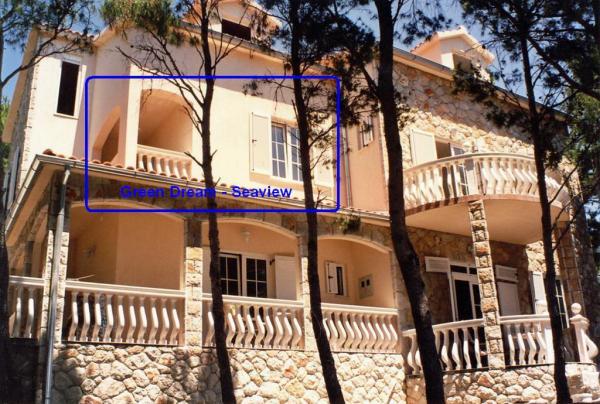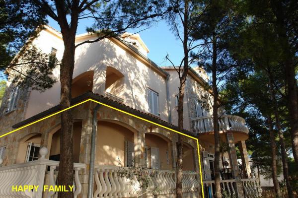 Villánk a tengerparton található (kb. 30 m), és egy aszfaltúton közelíthető meg, amely a közelben ér véget. A villa különálló, egy fenyveserdőben, kb. 900 m²-es, lábánál hat férőhelyes garázs található, az épület a városi vízellátásra, háromfázisú áramra van csatlakoztatva, valamint GSM, vezetékes telefon és ingyenes nagysebességű vezeték nélküli internet elérhetőségen belül van. A fenyőfák között lépcsőzetes fennsíkok találhatók pingpongozáshoz és egyéb tevékenységekhez. A kertben ingyenesen használható grillező, számos napozóágy és hinta, valamint cserkész-/matrózháló, sakk, kártya... minden szobához saját fürdőszoba, valamint saját loggia, terasz vagy erkély tartozik, minden szoba tengerre néző kilátással, minden szobában hűtőszekrény és műholdas TV található.