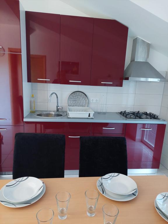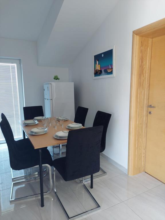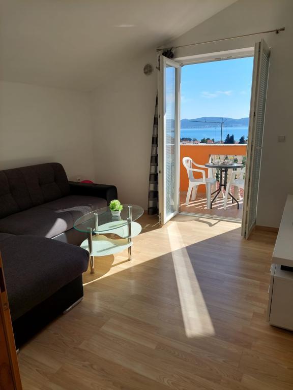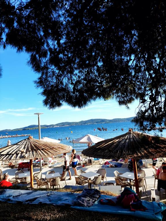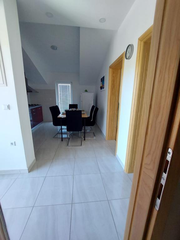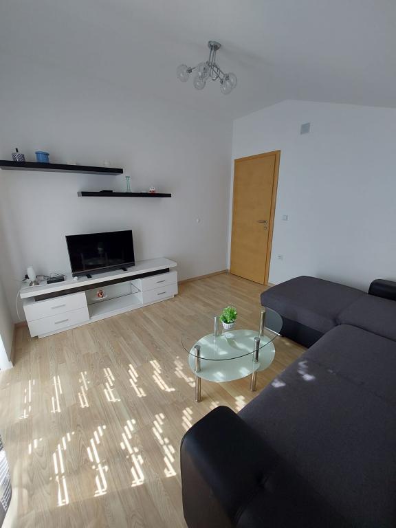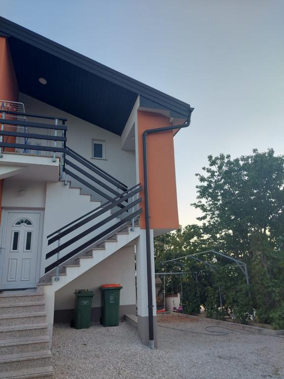 A lakás új építésű, alapterülete 45 m2, plusz erkély és terasz 10 m2, a második emeleten található, külön bejárattal rendelkezik. Konyha étkezővel, fürdőszoba, hálószoba és nappali. Az apartmanhoz egy tengerre néző erkély és egy nagy terasz tartozik a konyhából, amely szintén a tengerre néz. Körülbelül 10 perc séta a strand, és kényelmesen kaphat heti parkolójegyet a központban és a strandon történő parkoláshoz. Az udvarban privát parkolási lehetőség biztosított, valamint a gyermekek számára grillezési lehetőség és hinta. Lidl, Kaufland, Plodine, Konzum, éttermek és piac 1 km-re találhatók.