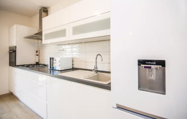 Új és modern apartman nappalival. Távol a város és a gyönyörű strandok csak egy tíz perces séta. Fedett parkoló.