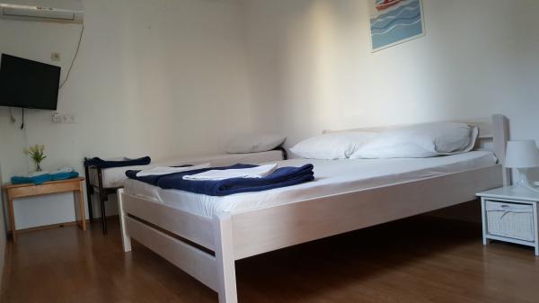 Lakossági adót az az ár tartalmazza.Ez volt az első horvátországi nyaralásunk. Nehéz volt az utolsó pillanatban szállást találni, de végül sikerült. Kicsit aggódtunk, mivel csak vakon foglaltuk le, de a kommunikáció már a legelejétől fogva olyan jó volt, hogy nyugodtan éreztük magunkat. Érkezéskor a barátságos tulajdonos fogadott minket, megmutatta a szobánkat, és elintéztük a formaságokat. Tartózkodásunk alatt folyamatosan elérhető volt e-mailben és más módon is, lehetővé téve, hogy segítséget kérjünk bármilyen problémával kapcsolatban. Könnyen kommunikáltunk angolul, és ha valakinek gondja akadt, e-mailt/tolmácsot tudtunk használni. Maga az apartman megfelelő volt az árához képest. A szoba nem volt a legújabb, de az ágyak elég kényelmesek voltak, minden viszonylag tiszta volt, törölközőket biztosítottak, és egy kis konyha is teljesen felszerelt volt – minden, amire szükség van. Érkezéskor meleg volt, de miután később lehűlt, a légkondicionáló rendben működött. Néha használtuk, amikor kimentünk, és visszatértünk egy hűvös apartmanba. A légkondicionáló használata gyerekekkel könnyen megbetegítheti őket, és ezt szerettük volna elkerülni, ahogy mindig is tesszük. A tulajdonosok nem hívták fel erre a figyelmünket, pedig a szabályok tiltották a medence használatát távozás után, de azt hiszem, sikerült kompromisszumot kötniük, és nem róják fel nekünk, és megértik, ahogy mi is igyekeztünk tiszteletben tartani a használat során a kompromisszumot. Minden kellemetlenségért kárpótol a tengerre néző kilátás a legfelső emeletről és a teraszról, ahol a feleségemmel estéket töltöttünk a kabócák hangulatos hangját hallgatva – csodálatos élmény :) A környék kellemes, kicsit meredek az út a lakásig, de ez minket nem zavart, a gyerekeket néha kicsit. A strand kényelmes tempóban kb. 10-12 percre van. A közelben minden megtalálható: zsúfolt strand, homokos és sziklás egyaránt, tiszta víz, finom fagylalt, széles választékban kínált éttermek, olcsók és drágák egyaránt, sétány az esti sétákhoz, nincsenek nagy tömegek, hajókirándulások a Kornati-szigetekre, és a tulajdonosok által ajánlott jó helyi termékek. Esténként békés és csendes volt, és ha valaki a városban akart kimenni a tartózkodásunk alatt, volt aratóünnepség, koncert, tűzijáték, szóval tényleg mindent megéltünk ;) A tartózkodás elején kellemes foga