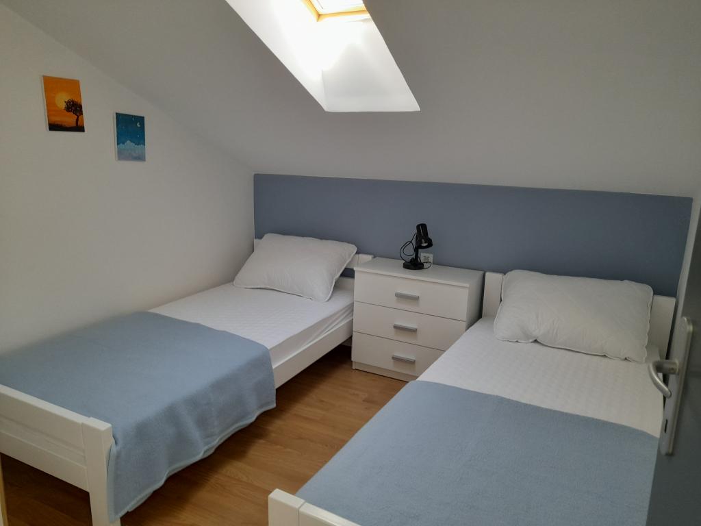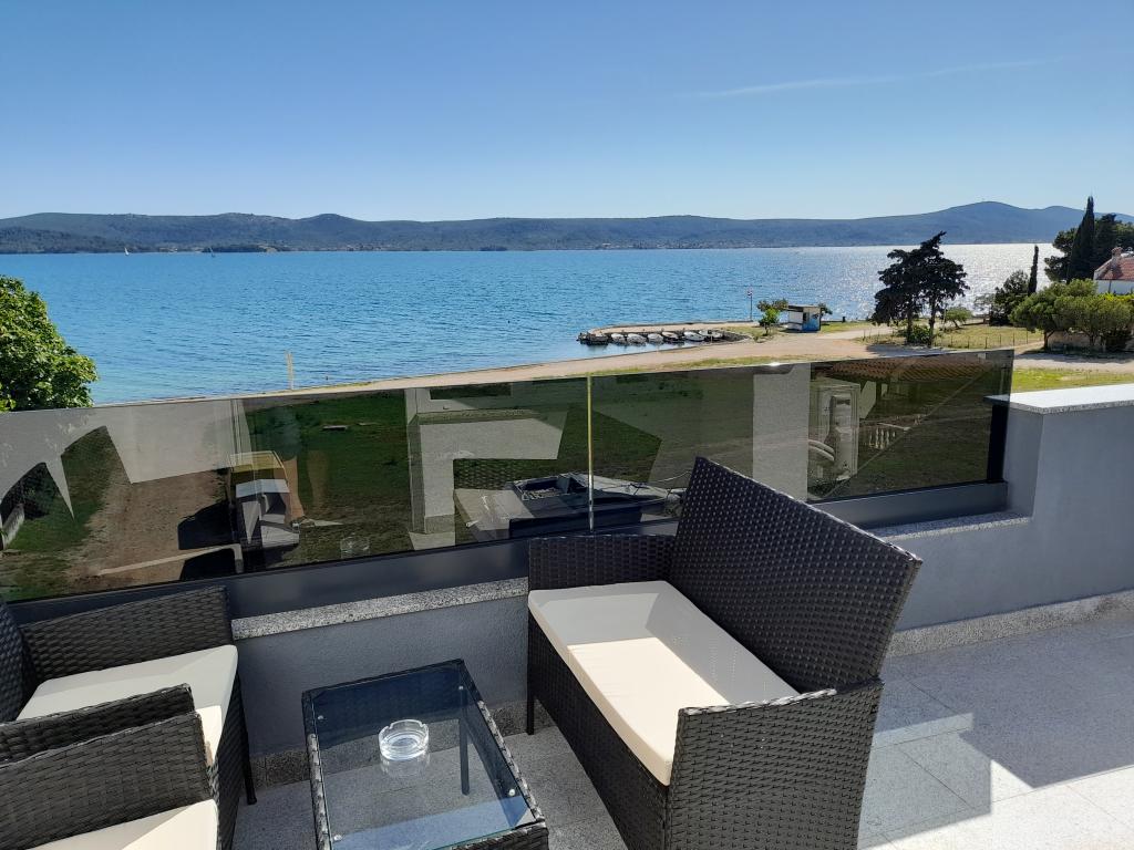 Két modern berendezésű, teljesen felszerelt, légkondicionált apartmant bérelek, gyönyörű kilátással a tengerre, mely mindössze 60 m-re van. 1 (4****) az első emeleten található, két hálószoba, mosógépes fürdőszoba, konyha minden géppel (mosogatógép, mikrohullámú sütő, kenyérpirító...), nappali kihúzható- egy ágy és egy terasz, ahonnan gyönyörű kilátás nyílik Pašman szigetére. App 2 található a tetőtérben, két hálószoba, egy konyha nappalival, egy fürdőszoba és egy terasz, kilátással a tengerre. Felszereltsége pontosan megegyezik az 1-es alkalmazással. A gépkocsik parkolása az udvarban vagy az udvar előtt biztosított.