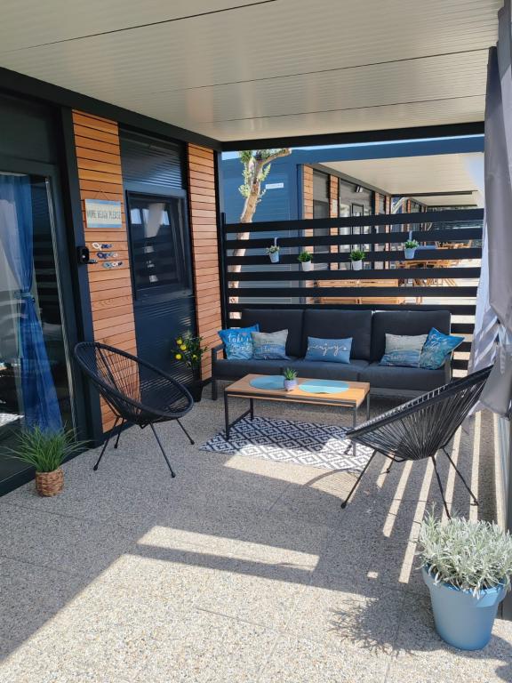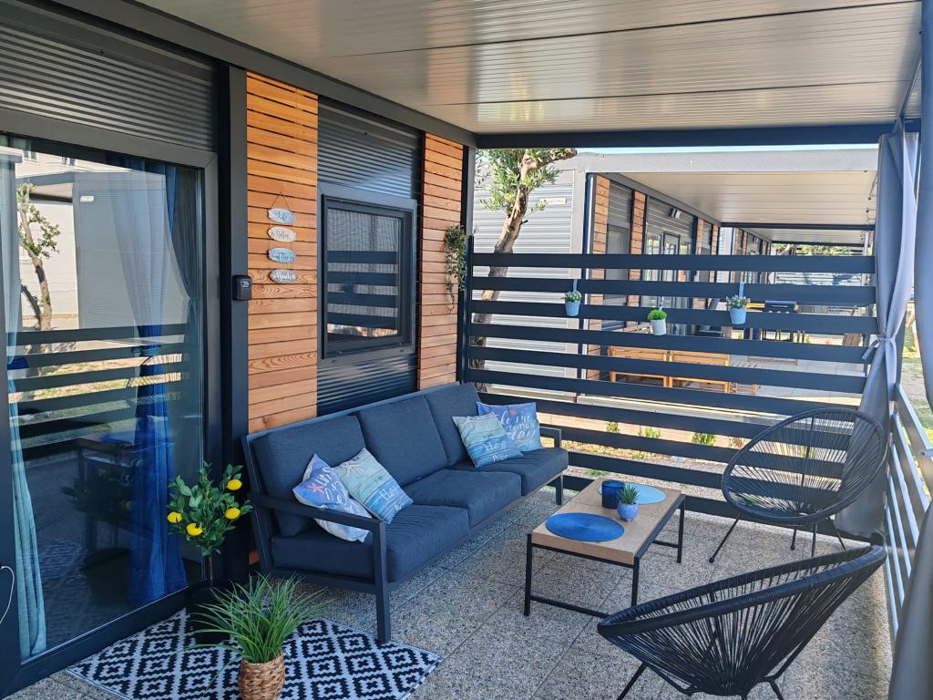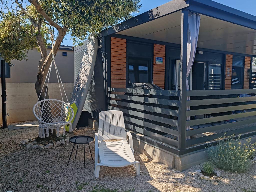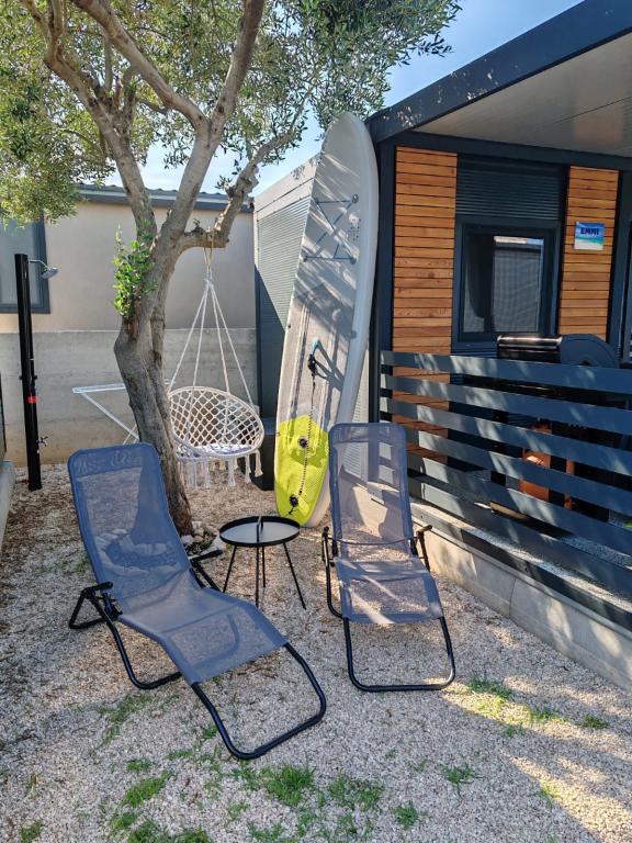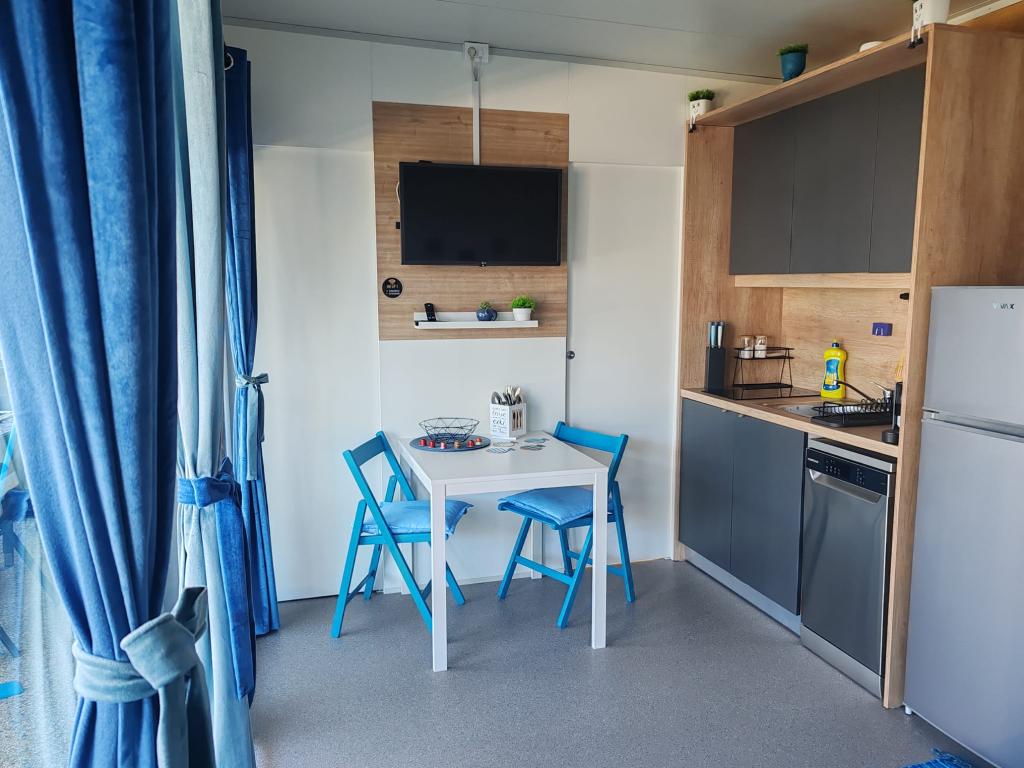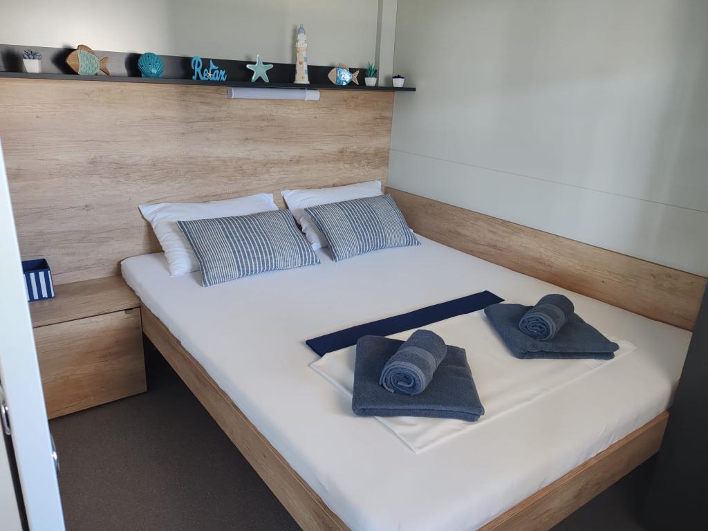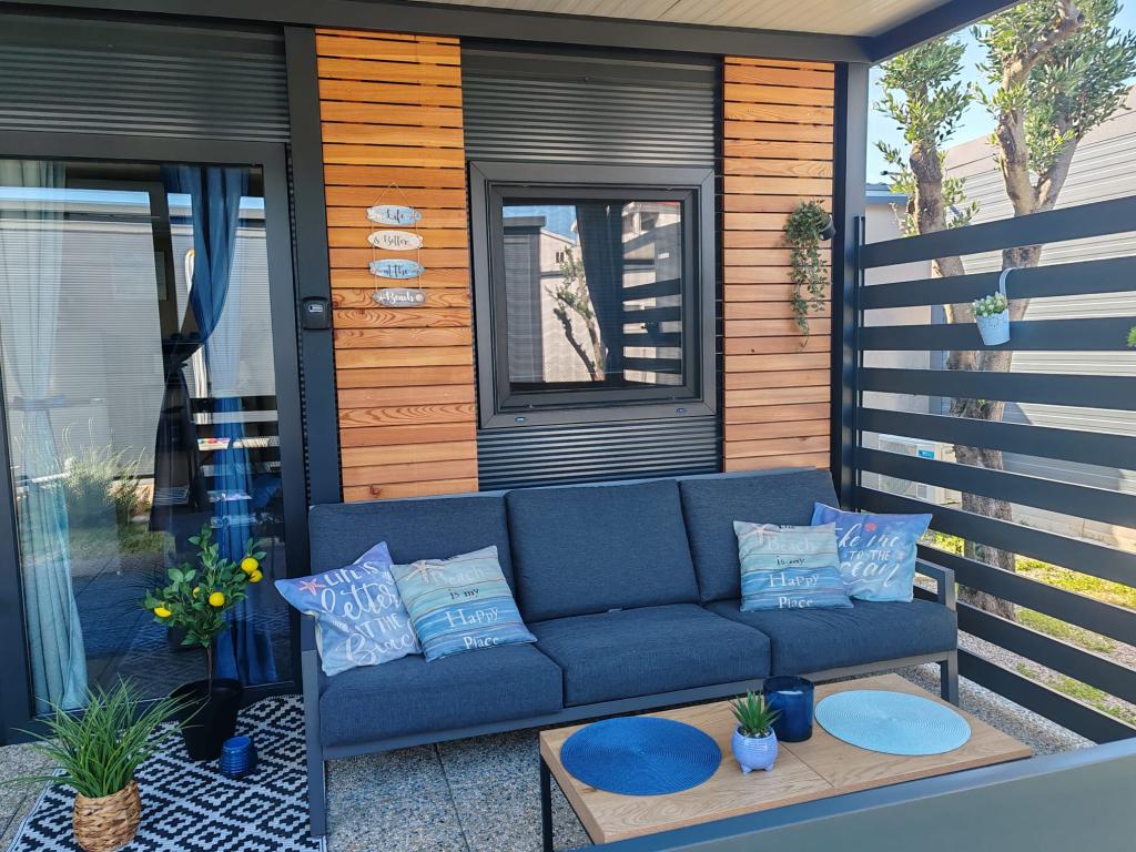 Az új, teljesen felszerelt mobilház a nemrég felújított Camp Tamarisban található. A ház teljesen felszerelt, minden kényelemmel egy kellemes nyaraláshoz. A ház előnye a gyönyörű strand közelsége, mindössze 15 méterre. A ház leírása: -2 hálószoba franciaággyal (140x200 és 160x200) és ágyneművel -konyha nappalival (kihúzható asztal, kanapé) -fürdőszoba (törölköző és hajszárító) -nagy tágas terasz (asztal + 6 szék, bútorok és székek ülőbútorokkal, gázgrill plusz égővel a főzéshez)