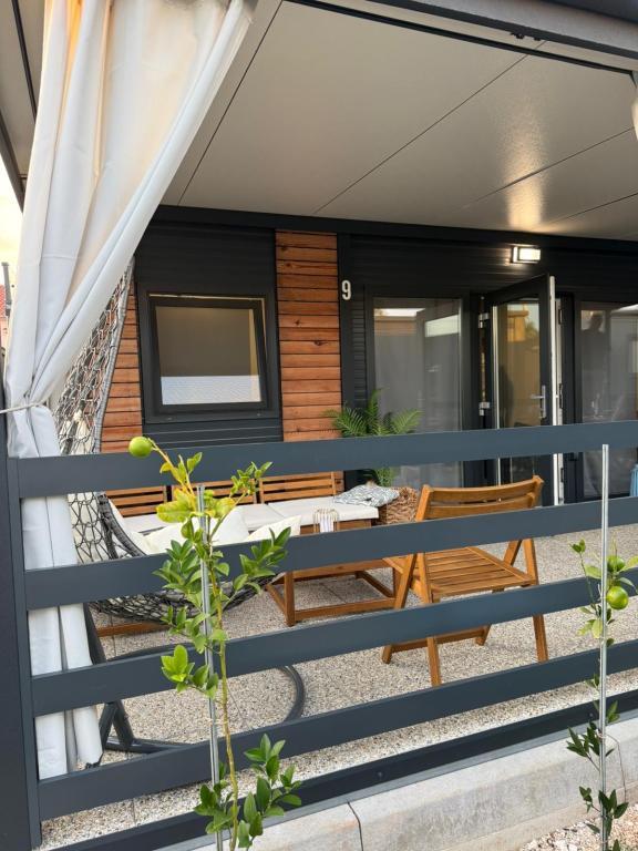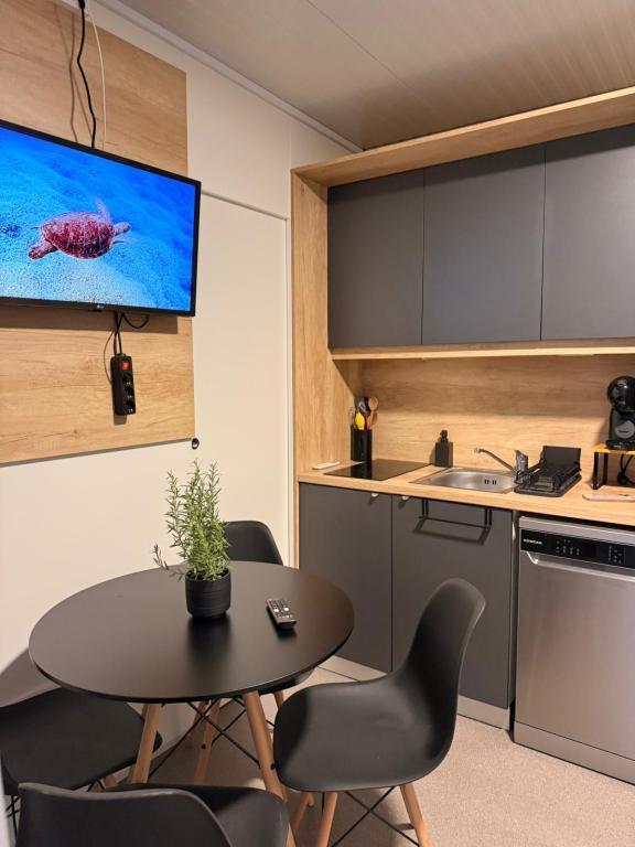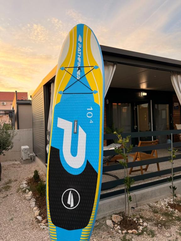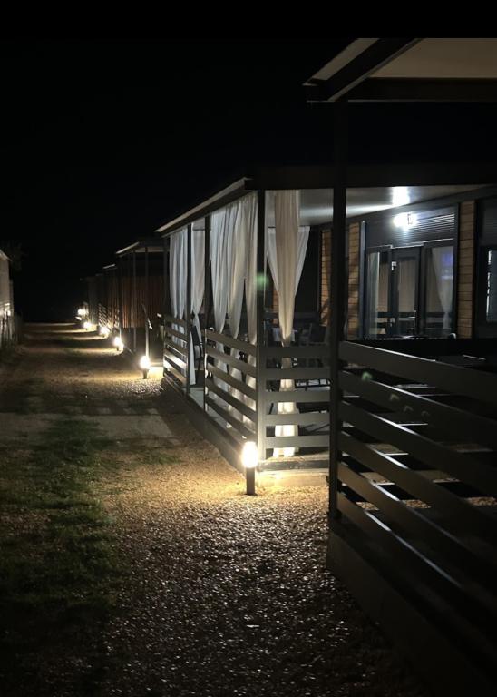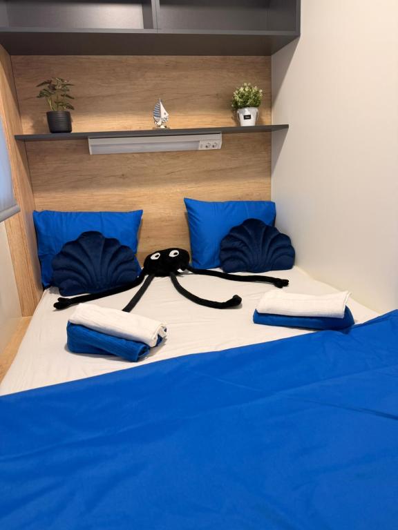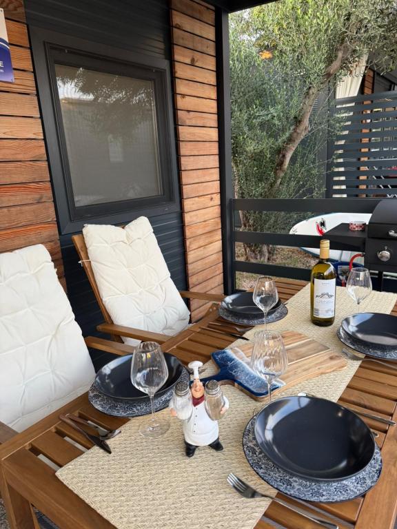 Egy gyönyörű mobilház a tengerparton, mindössze pár lépésre egy gyönyörű kavicsos strandtól és egy csendes tengerparttól, éttermek és kávézók közelében, kellemes pihenésre és baráti társasággal való időtöltésre, gyermekek számára is alkalmas, mivel a házból gyalogosan is elérhető az úszás.