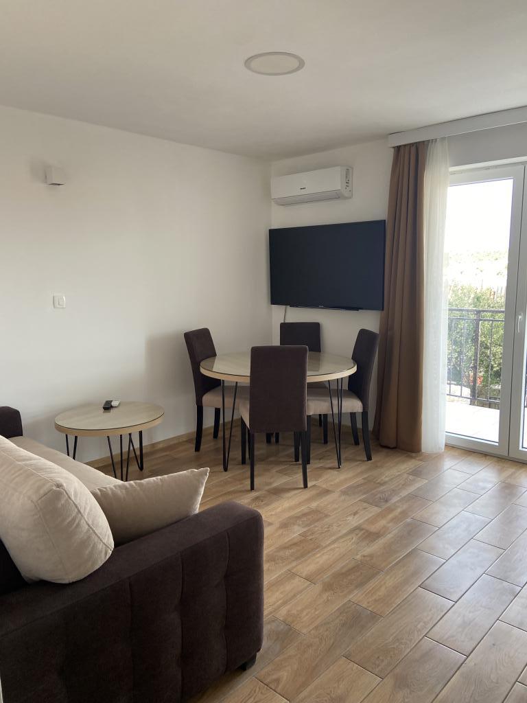 A Tisno Resort a város szigeti részén található, a tenger és a strandok, valamint a környező helyekre vezető erdei utak és ösvények közvetlen közelében, ahonnan egyedülálló kilátás nyílik a Kornate Nemzeti Parkra. Az üdülőhely mellett egy kőút vezet a gyönyörű, régi Karavaji Szűzanya kőtemplomhoz. Az üdülőhely négycsillagos, ami már a kezdetektől megkülönbözteti a legtöbb más szálláshelytől, így luxust és magánéletet biztosít vendégei számára. 6 különálló apartmant kínál, emeletenként 2-t. Minden apartman 4 fő elszállásolására alkalmas (egy hálószoba franciaággyal, és két további hálószoba a legmodernebb memóriahabos matracokkal) és egy hálószoba, fürdőszoba, konyha és nappali. Az apartmanok új és modern audio és TV berendezésekkel, WiFi-vel, bútorokkal és légkondicionálóval felszereltek. Minden apartmanhoz erkély és közös terasz tartozik a földszinten. Az üdülőhely szabadtéri területén grillezési lehetőség, közös szabadtéri konyha, medence és zuhanyzók találhatók.