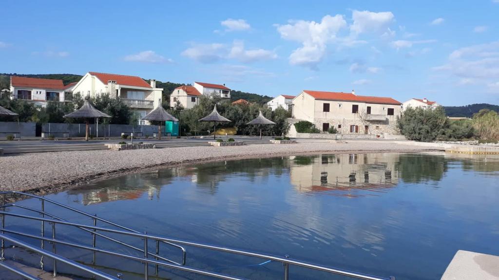 Az apartmanok találhatók egy kis faluban, nem messze Ugrinić Tkon a Pasman szigeten. Az apartmanok egy családi ház 3 percre a strandtól. Beach újonnan díszített napernyők. (Pjeskovitošljunčana) Parkolóhely az udvarban előtt a lakás. Van egy fekvőhely kis csónakok számára. Amikor a tulajdonos is megvásárolható: krumpli, hagyma paradicsom, olívaolaj, házi vörös és fehér bor, aszalt füge és az összes többi saját termelés.
