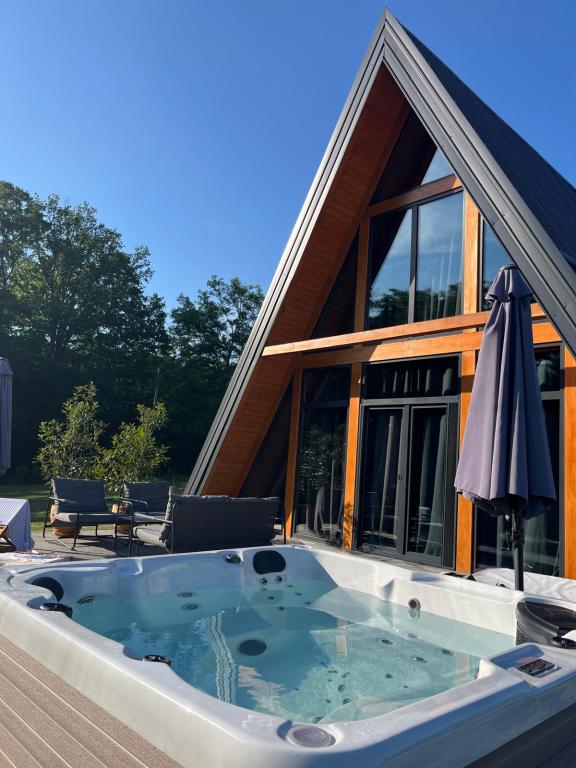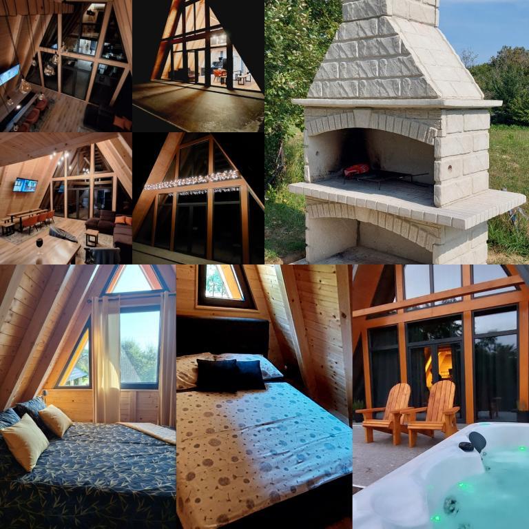 A ház 2 szoba franciaággyal, konyha, nappali és étkező egyben, egy nagy fedett terasz és egy még nagyobb fedett terasz, ahol egy hidromasszázs fűtött medence található 40 fúvókával. nézed a csillagokat és élvezed a kedvenc italodban., kávéfőző, társasjátékok és szabadtéri grill ahol lehet grillezni vagy sütni (helyi hentes 4 km). legény- és leánybúcsúk tartása, házi kedvencek tartása nem megengedett.