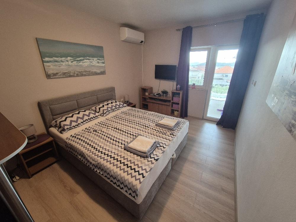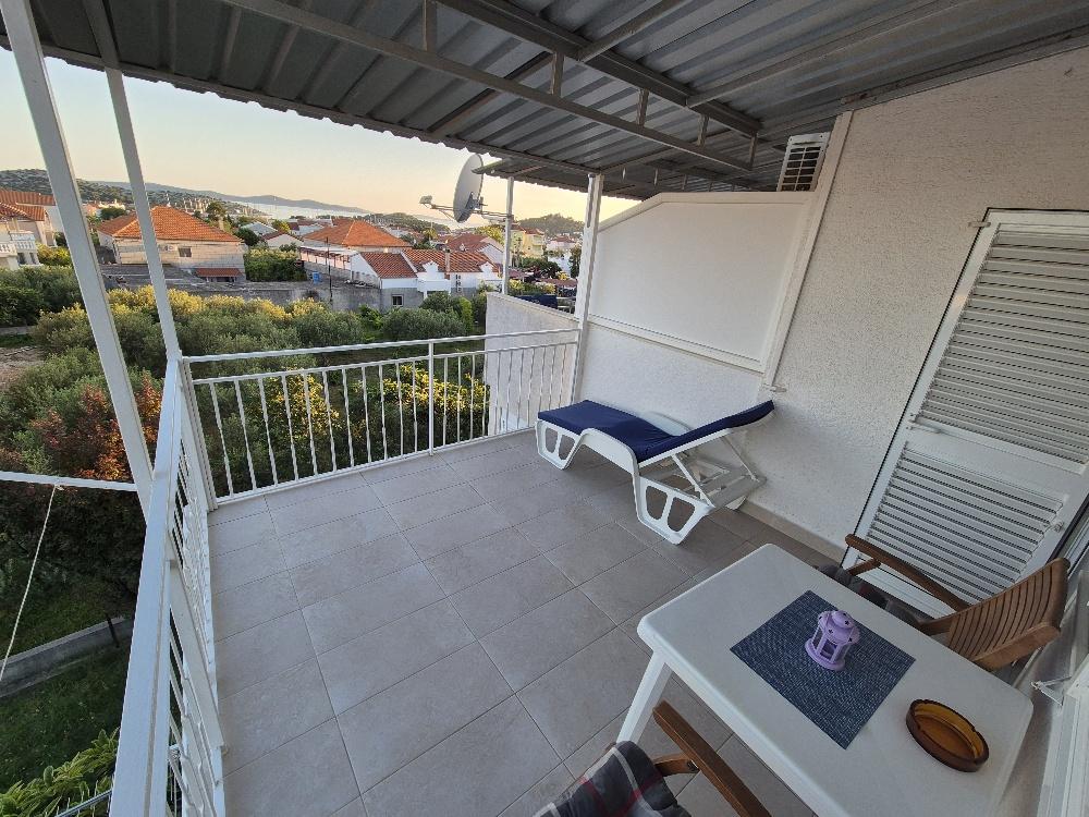 Bérelünk egy bájos kétágyas apartmant Tribunjban, egy festői halászfaluban, amely a part mentén emelkedik, nem messze a festői Vodice városától, és ismert a hagyományos teherfuvarozási versenyéről. Egy kisebb épület második emeletén található ez az apartman tágas terasszal, ahonnan gyönyörű kilátás nyílik a tengerre és a környező tájra, amely egészen Vodicéig, Šibenikig, Prvićig és számos más szigetig, míg a templom Utca. Nikole éjszaka ragyog a távolban. A vendégek igénybe vehetik a légkondicionálást, a parkolót és a modern LCD TV-t/műholdas antennát a kellemes esti pihenéshez. A konyha teljesen felszerelt, gáztűzhellyel, hűtőszekrénnyel fagyasztóval és minden szükséges kellékkel az ételek, italok elkészítéséhez, felszolgálásához. A fürdőszoba kényelmes, zuhanykabinnal és funkcionális szaniterrel felszerelt. Az ár tartalmazza az idegenforgalmi adót, a légkondicionálás és a parkoló használatát, valamint az ár 30%-os előlegje biztosítja a foglalást. Tribunj gyönyörű strandokat és minden szükséges kényelmi szolgáltatást kínál a kellemes tartózkodáshoz - üzletek, ATM-ek, klinika, gyógyszertár,