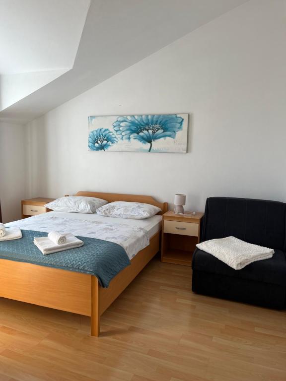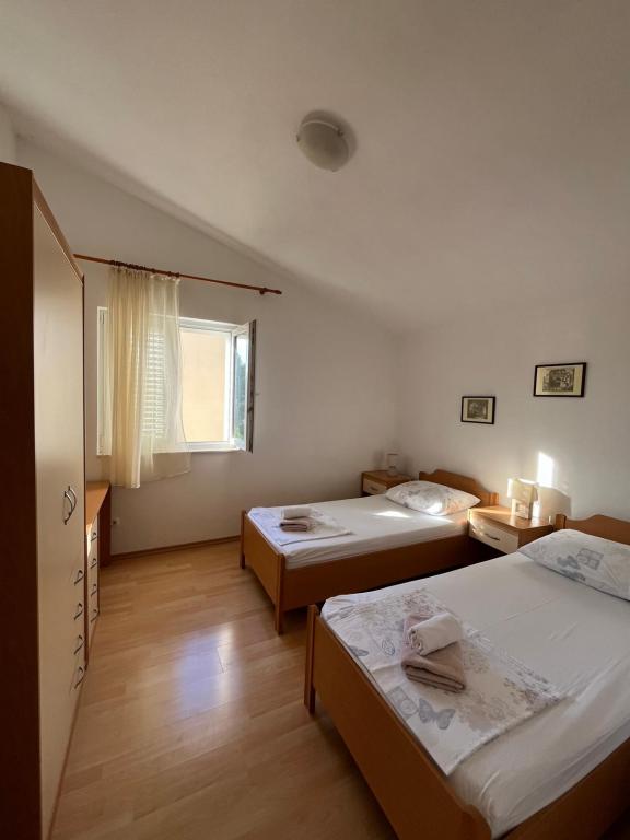 Apartmanok Agata a Tribunju közelében, a kikötő, a strand csupán 3 perc sétára. Az első emeleten van két egy hálószobás apartman (A1, A2) pótággyal az étkező / nappali. Konyha, fürdőszoba, erkély / terasz, ahonnan szép kilátás (látható a képen) lesz öltöny párok és kis családok. A tetőtérben a szolgáltatás egy kisebb apartman (A3) és a nagyobb hálószoba (A4), és még szebb kilátással.